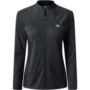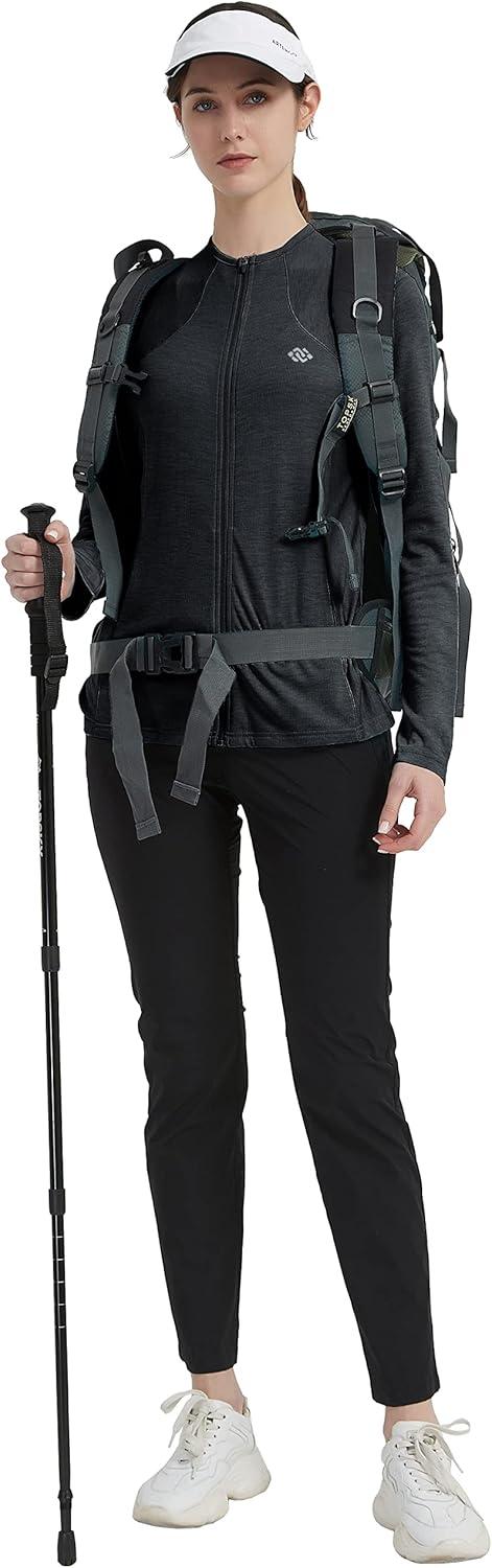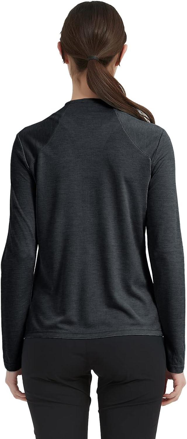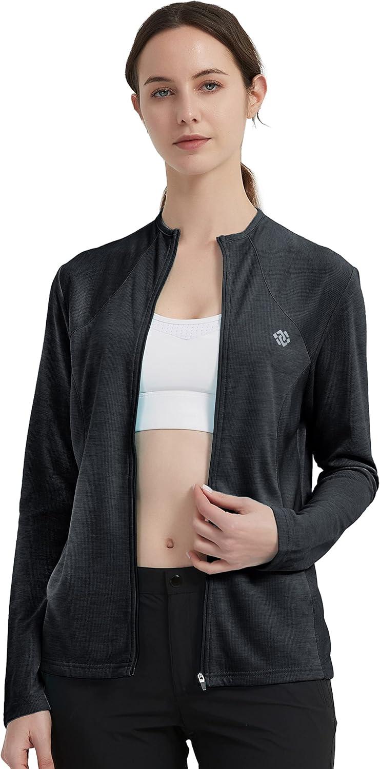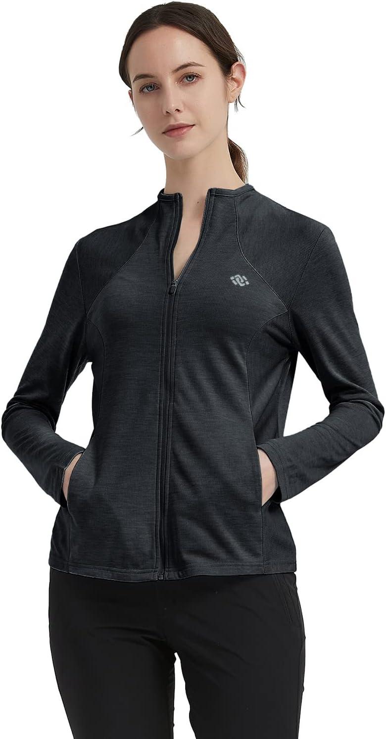MoFiz Women’s Full Zip Hiking Shirt Lightweight UPF 50+ Sun Protection Running Jacket Long Sleeve Sports Outdoor Top Pocket(Black Grey)