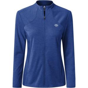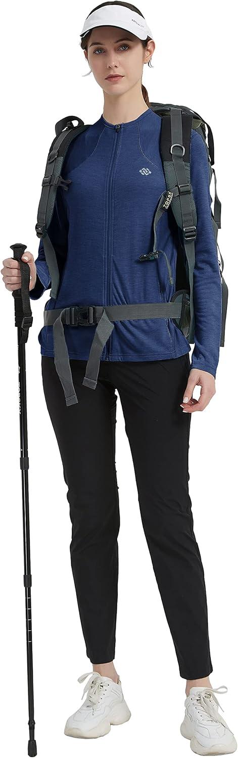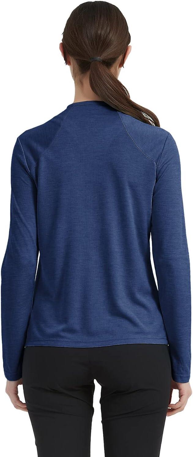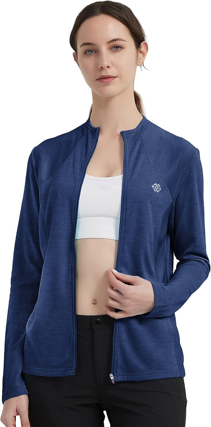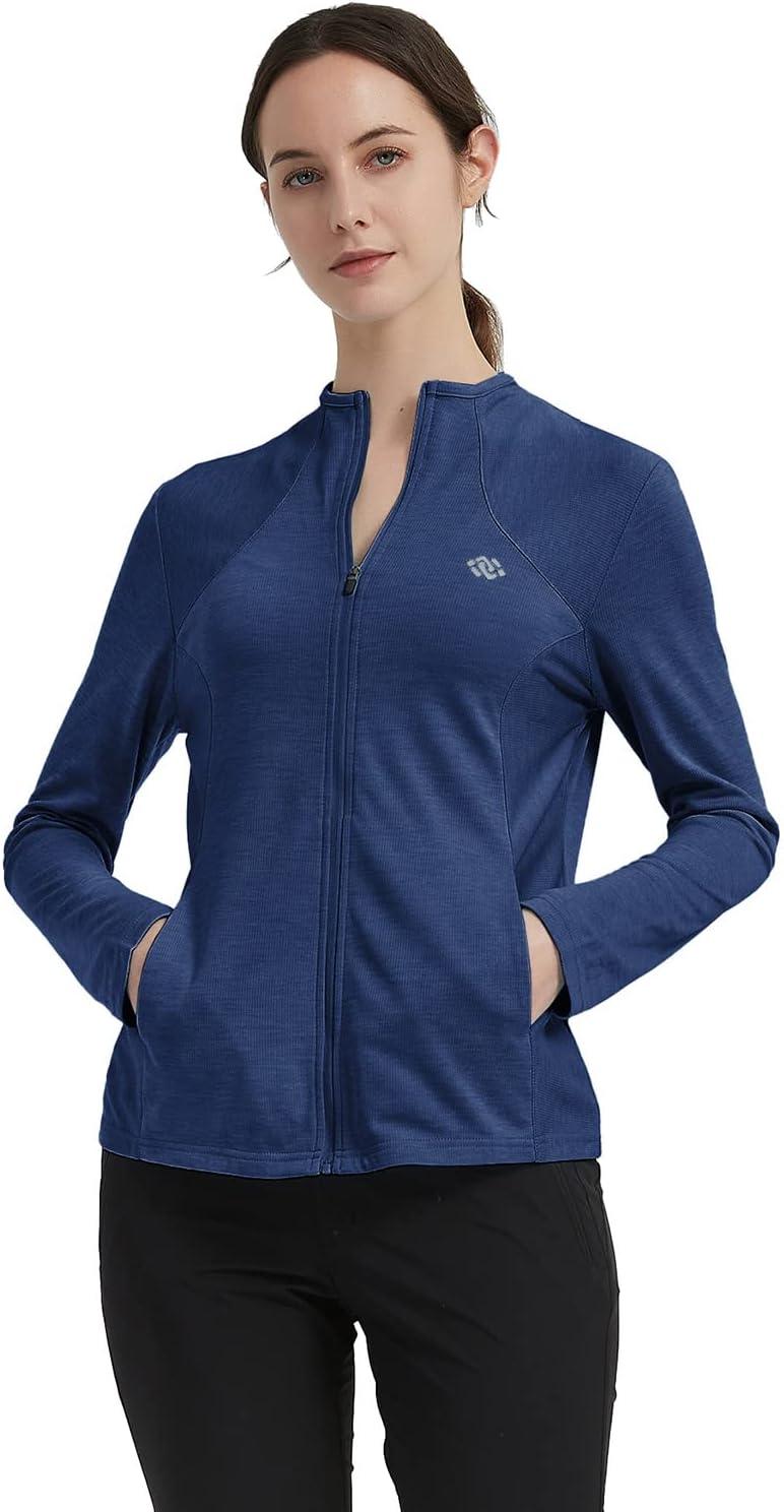 MoFiz Women’s Full Zip Hiking Shirt Lightweight UPF 50+ Sun Protection Running Jacket Long Sleeve Sports Outdoor Top Pocket(Blue)