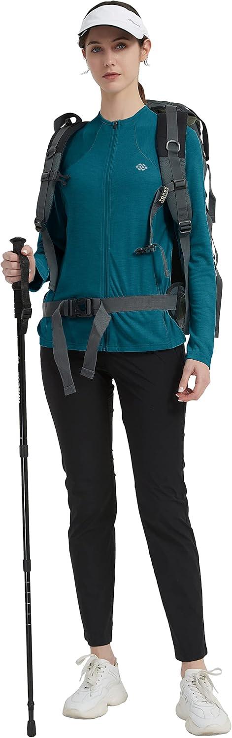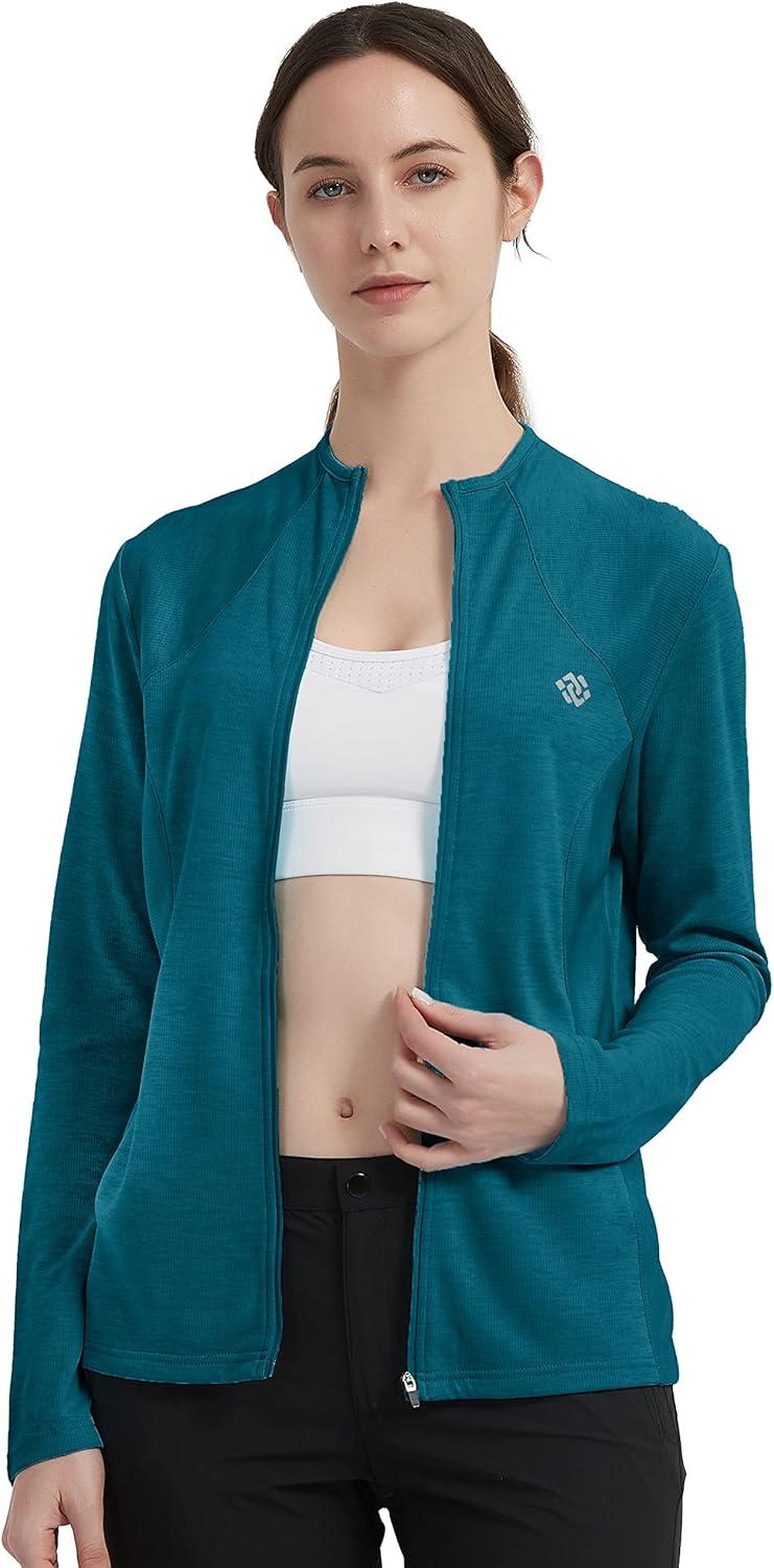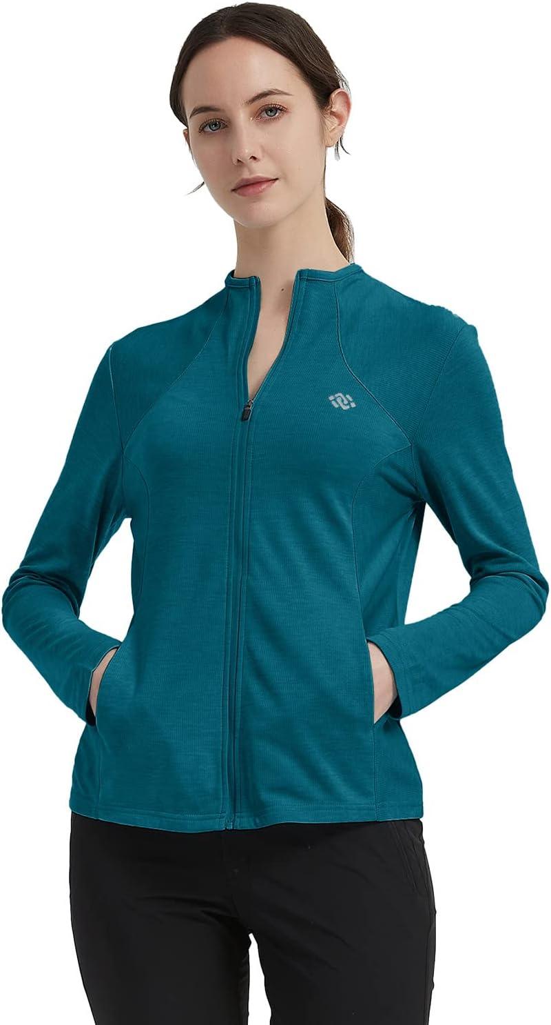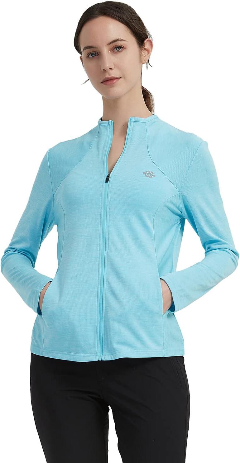 MoFiz Women’s Full Zip Hiking Shirt Lightweight UPF 50+ Sun Protection Running Jacket Long Sleeve Sports Outdoor Top Pocket(Ocean Blue)