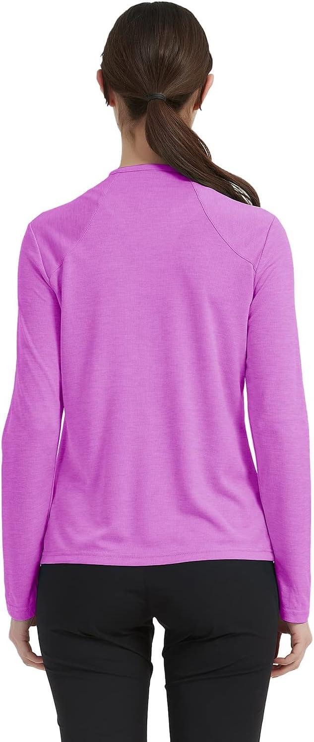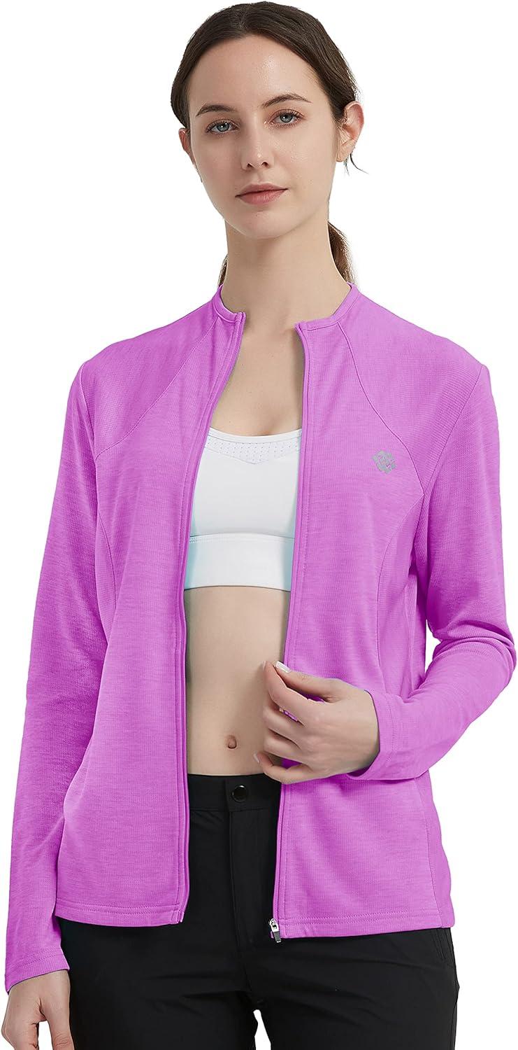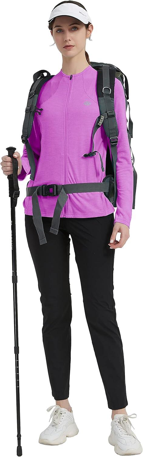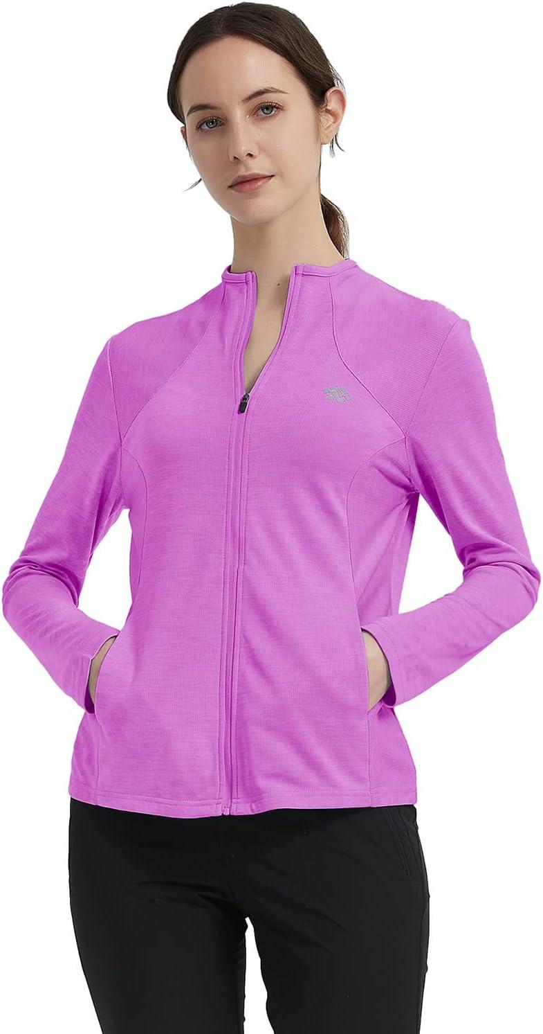 MoFiz Women’s Full Zip Hiking Shirt Lightweight UPF 50+ Sun Protection Running Jacket Long Sleeve Sports Outdoor Top Pocket(Purple)