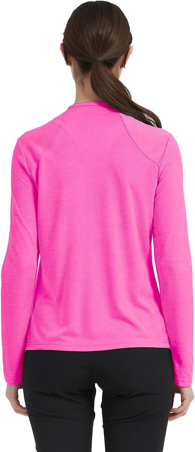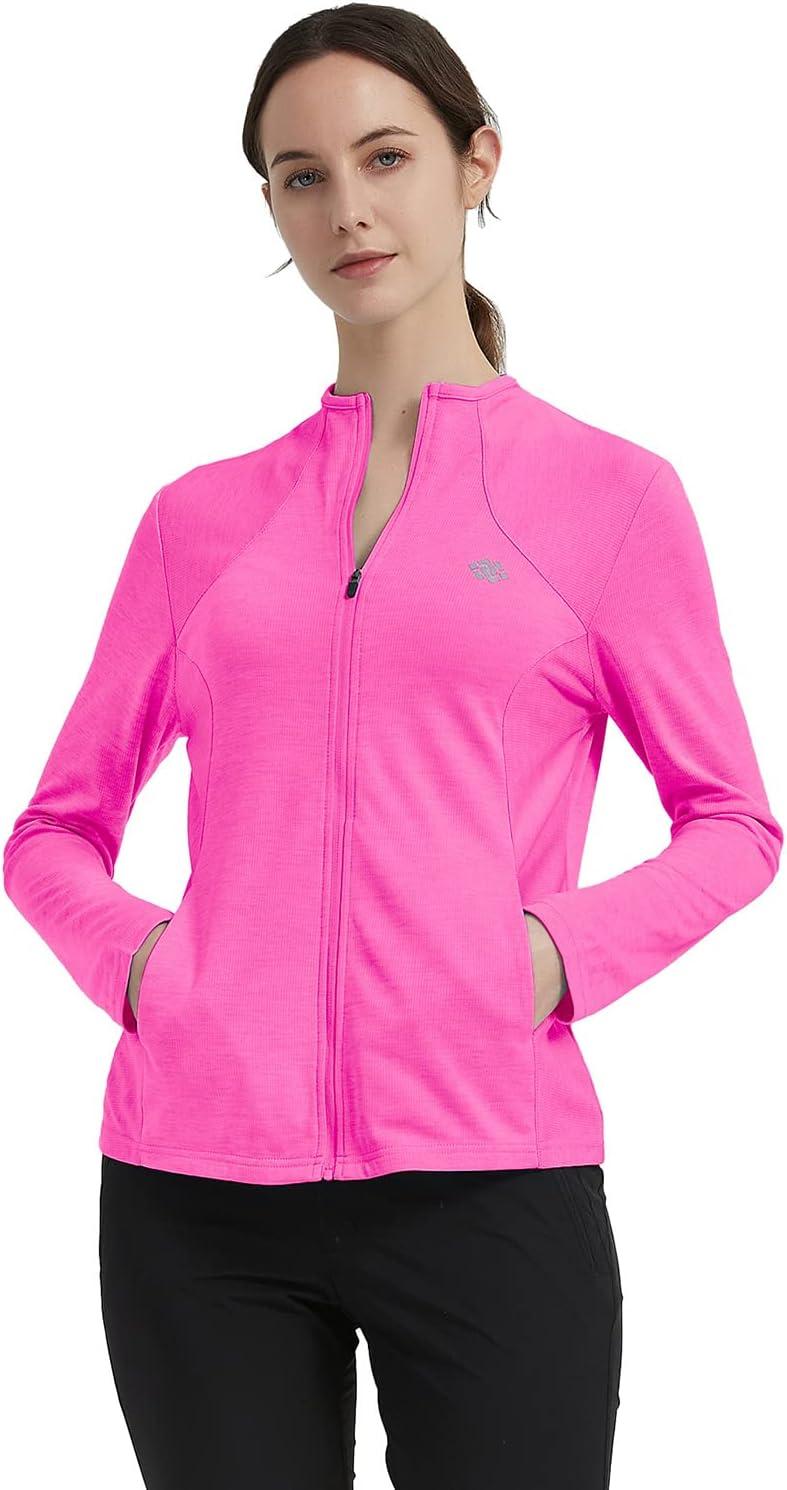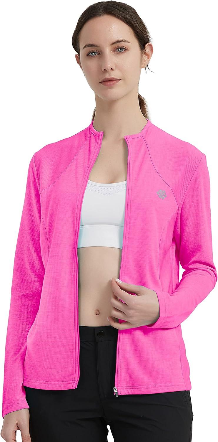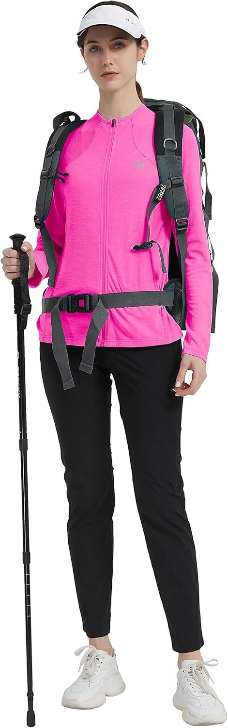 MoFiz Women’s Full Zip Hiking Shirt Lightweight UPF 50+ Sun Protection Running Jacket Long Sleeve Sports Outdoor Top Pocket(Rose Red)