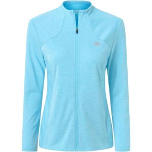 MoFiz Women’s Full Zip Hiking Shirt Lightweight UPF 50+ Sun Protection Running Jacket Long Sleeve Sports Outdoor Top Pocket(Sky Blue)