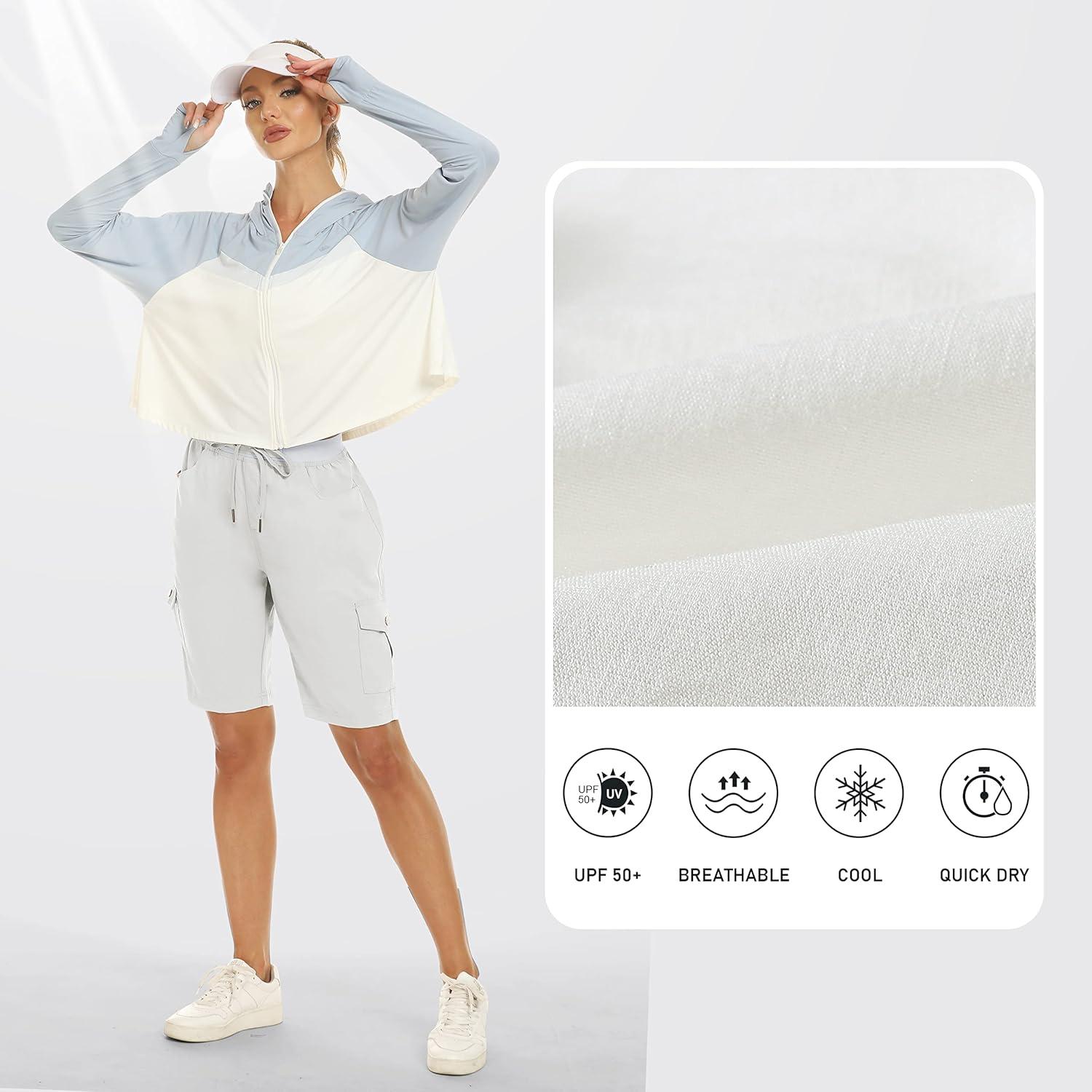 MoFiz Women’s 10″ Hiking Cargo Shorts 6 Pockets Lightweight Quick Dry Outdoor Running Athletic Short Summer Travel Loose(Rice White)