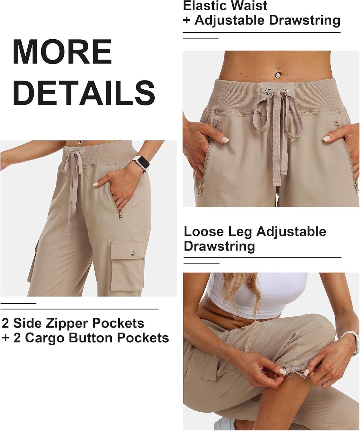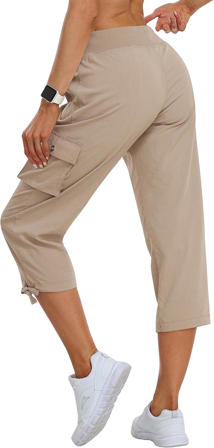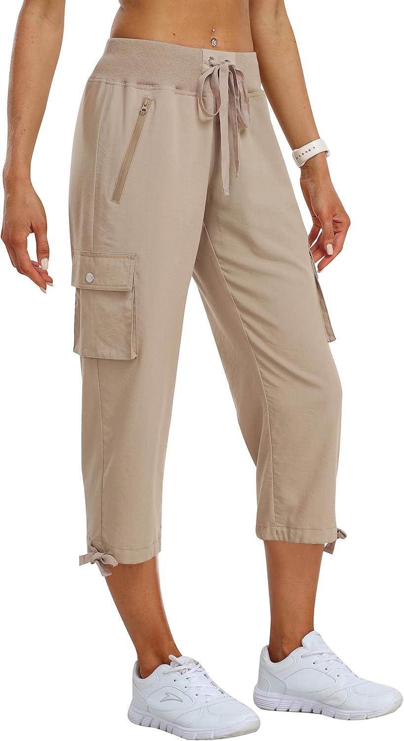MoFiz Hiking Cargo Pants Women Summer 3/4 Long Lightweight Capri Outdoor Trousers Breathable with Zipper Pocket(C02-khaki)