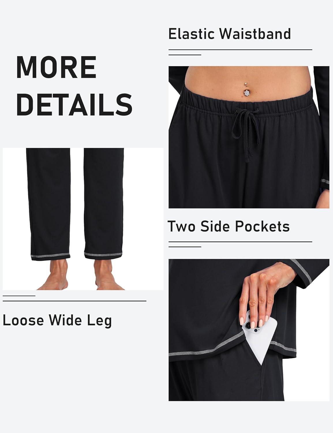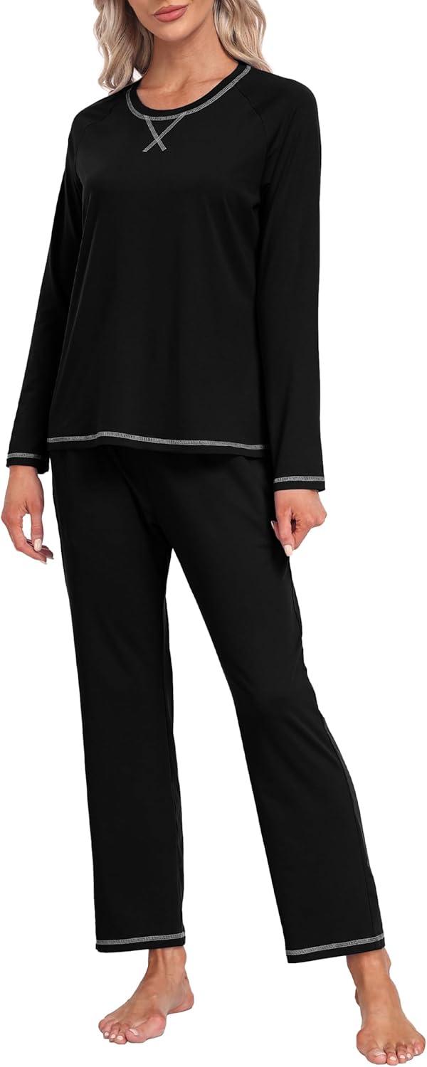 MoFiz Women’s Pajamas Sets Long Sleeve Sleepwear 2 Piece Pjs Lightweight Lounge Set with Pockets(Black)