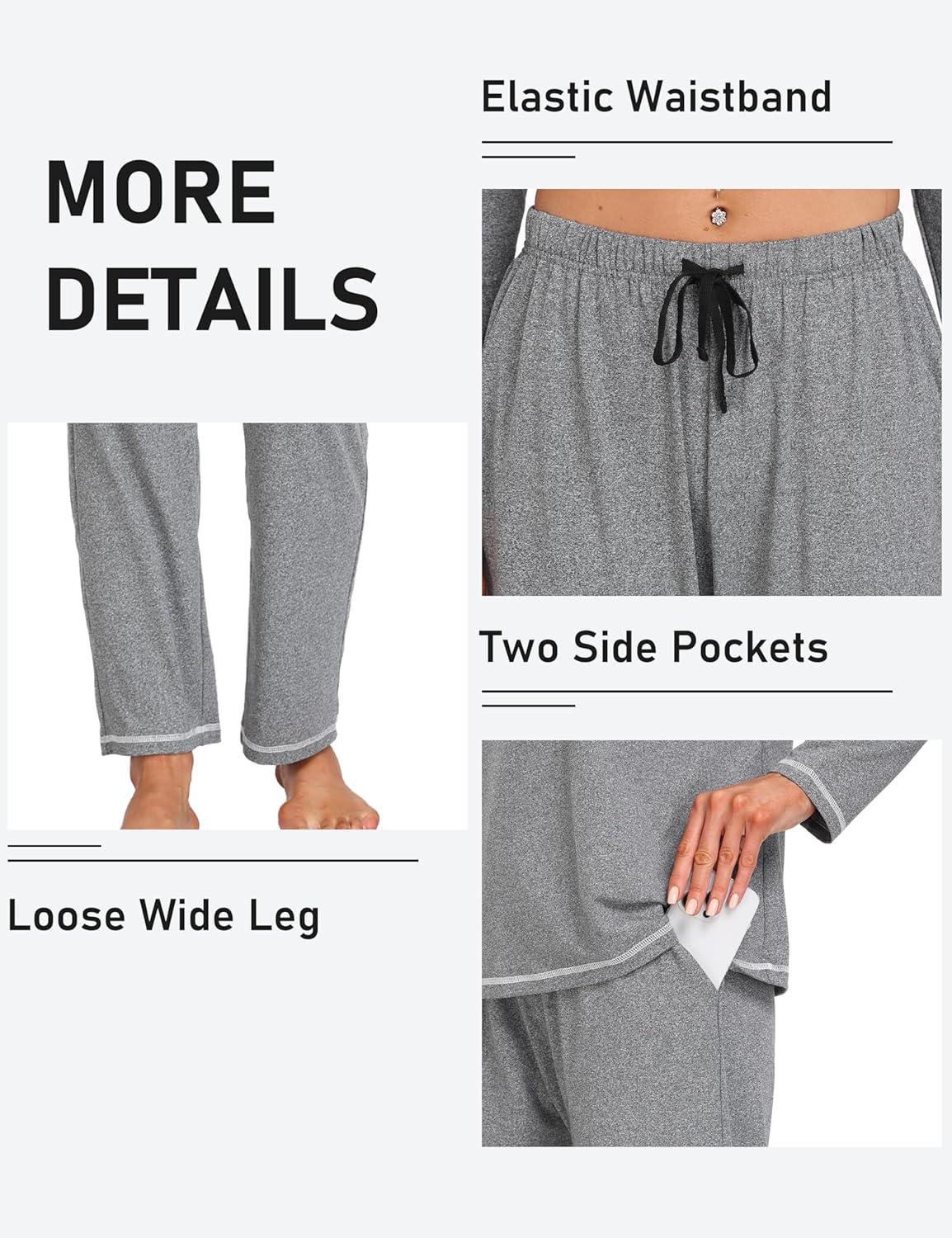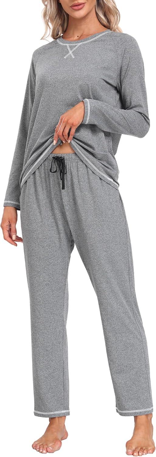 MoFiz Women’s Pajamas Sets Long Sleeve Sleepwear 2 Piece Pjs Lightweight Lounge Set with Pockets(Grey)