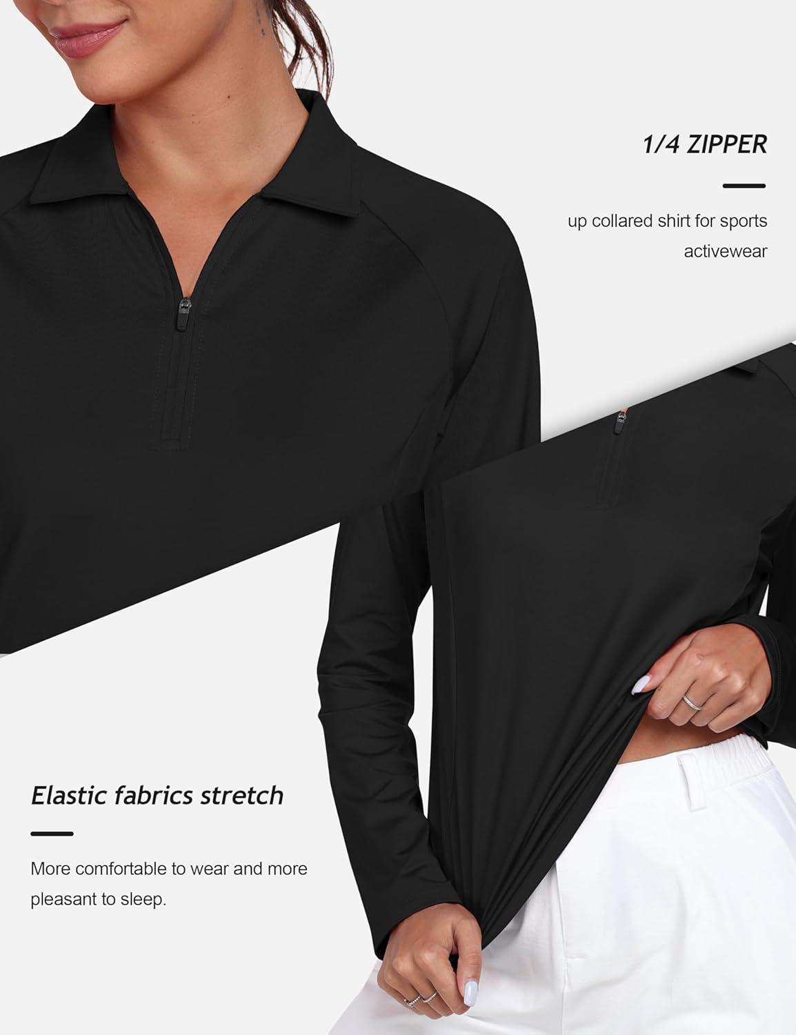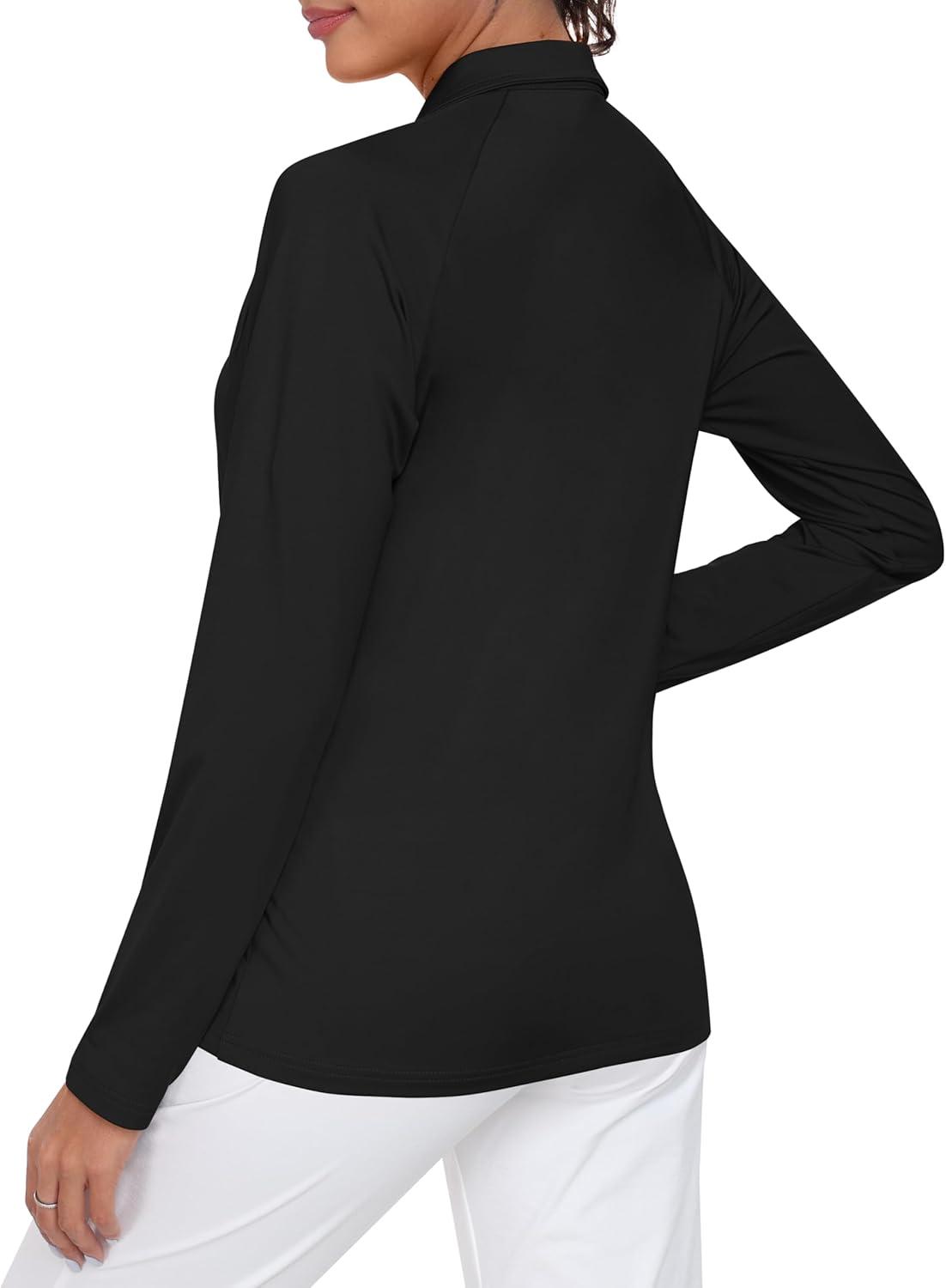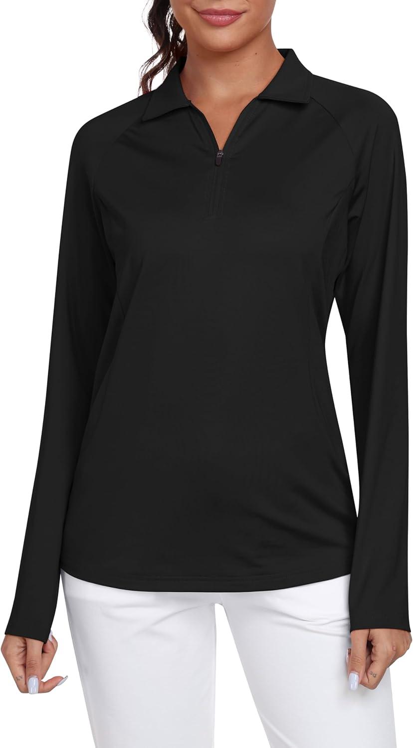 AIRIKE Golf Polo Shirts for Women Long Sleeve Colourful Quick-Dry Workwear & Activewear-Womens Athletic Apparel(Black)