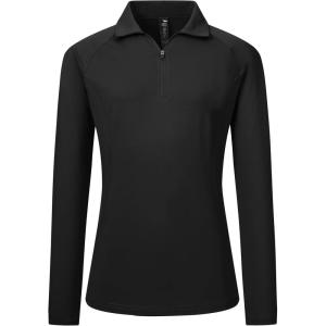 AIRIKE Long Sleeve Golf Polo Shirts for Women Stand Up Collar Thermal Fleece Womens Tank Top(Black)