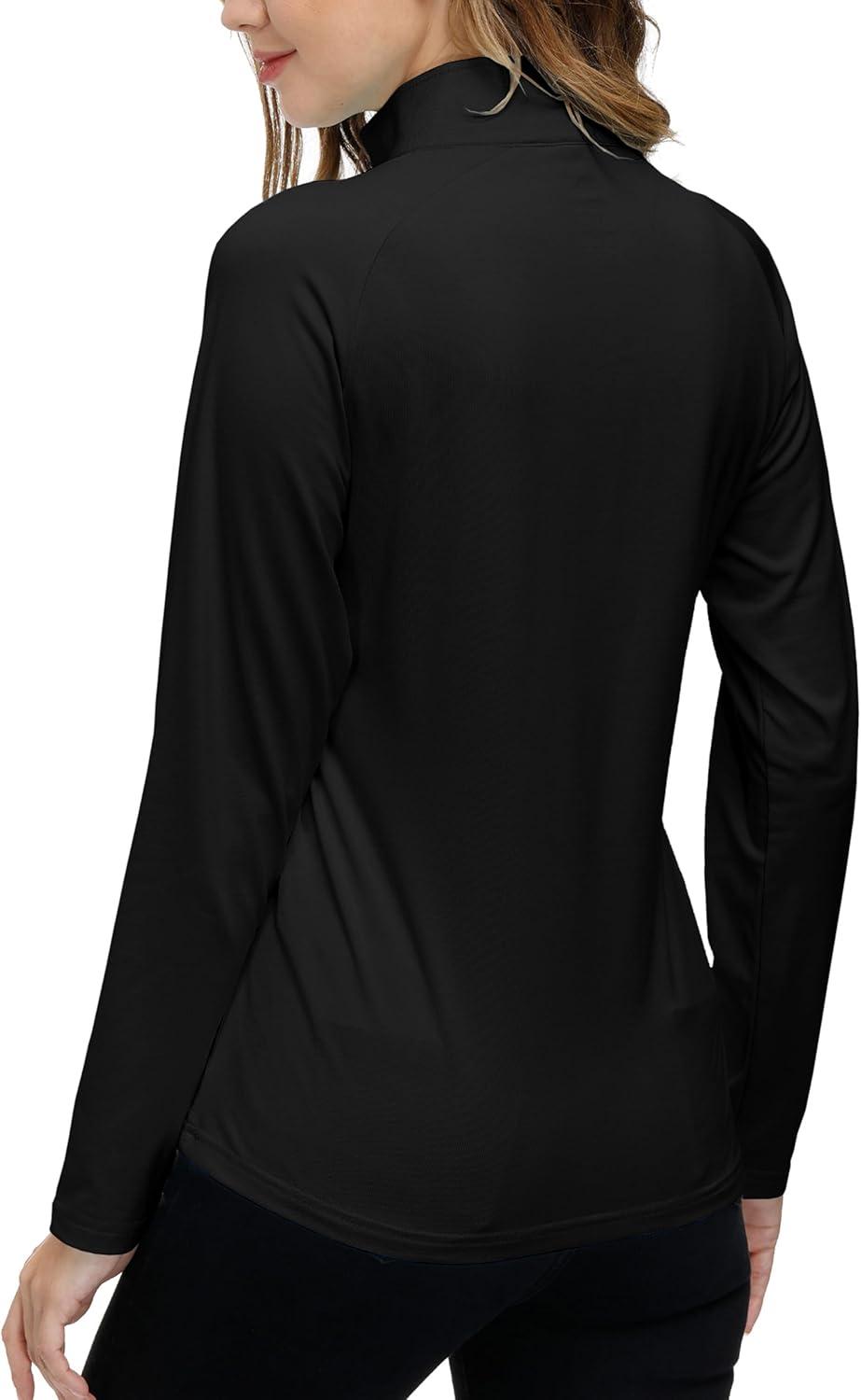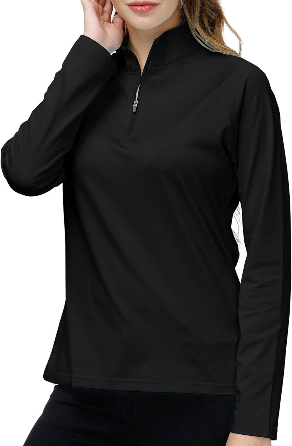 AIRIKE Women’s Zipper Up Golf Shirts Long Sleeve Polo Shirt Quick Dry Comfy Fleece Tennis Tops(2024-black)