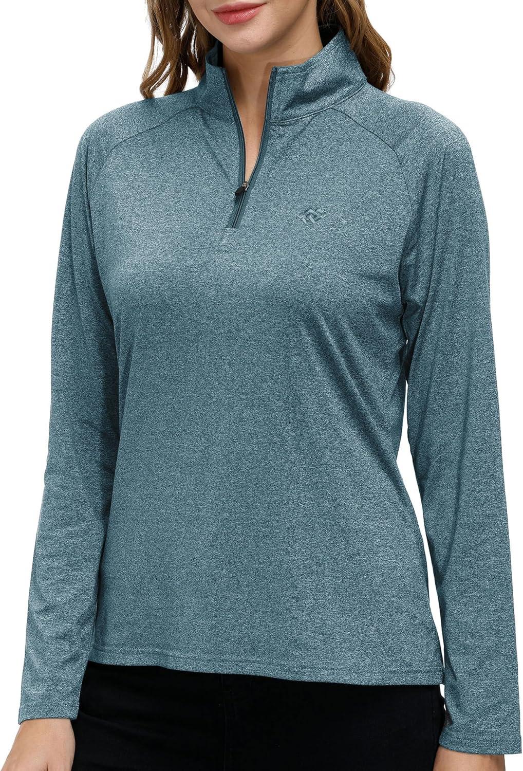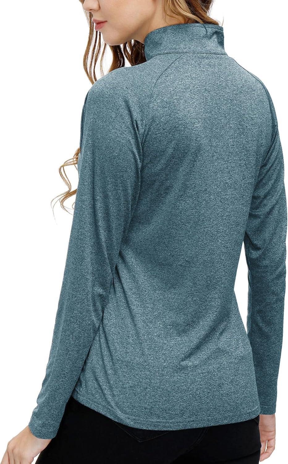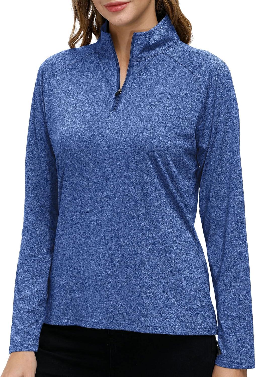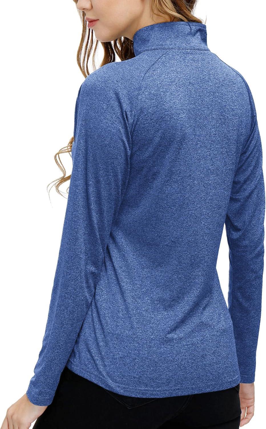 AIRIKE Long Sleeve Golf Polo Shirts for Women Stand Up Collar Thermal Fleece Womens Tank Top(Blue 2)