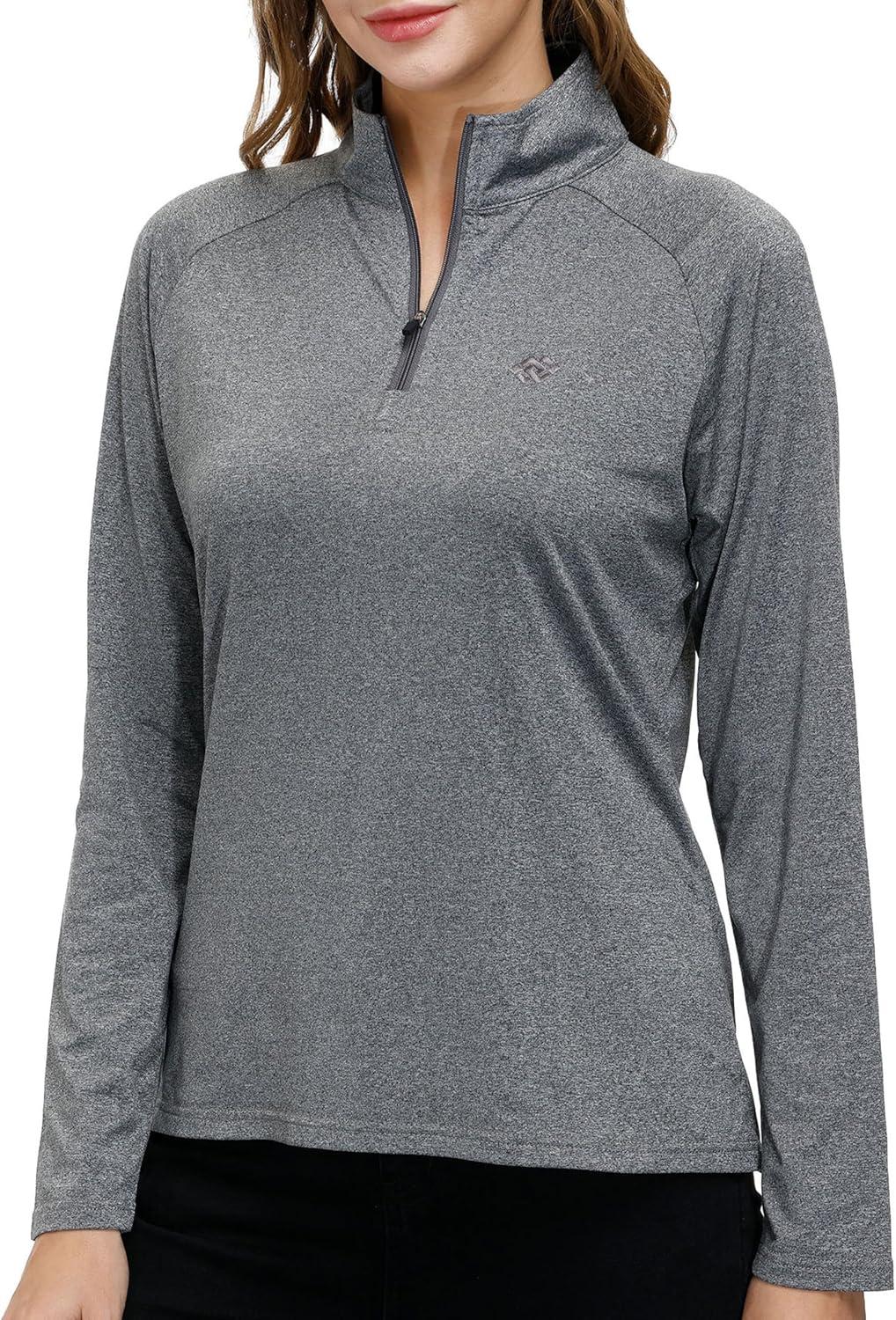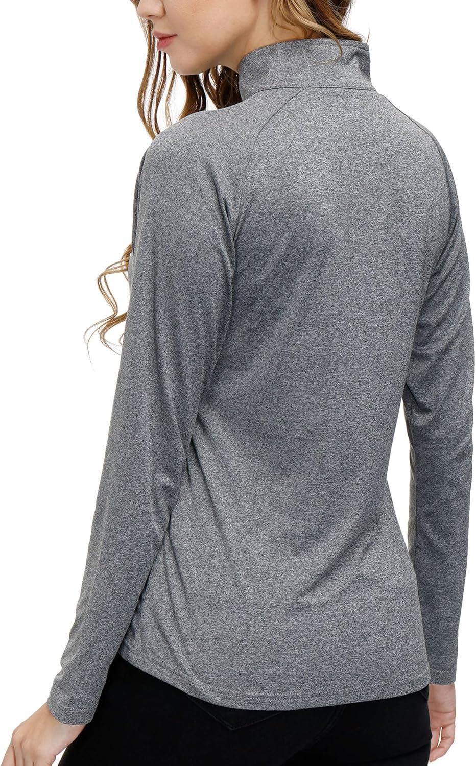 AIRIKE Long Sleeve Golf Polo Shirts for Women Stand Up Collar Thermal Fleece Womens Tank Top(Grey)