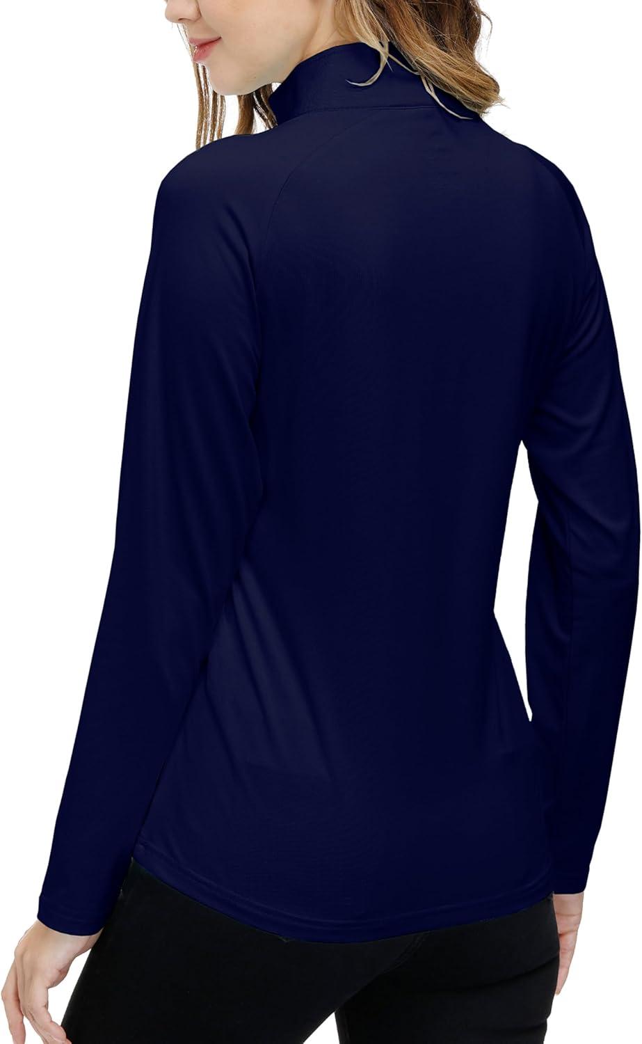 AIRIKE Long Sleeve Golf Polo Shirts for Women Stand Up Collar Thermal Fleece Womens Tank Top(Navy)