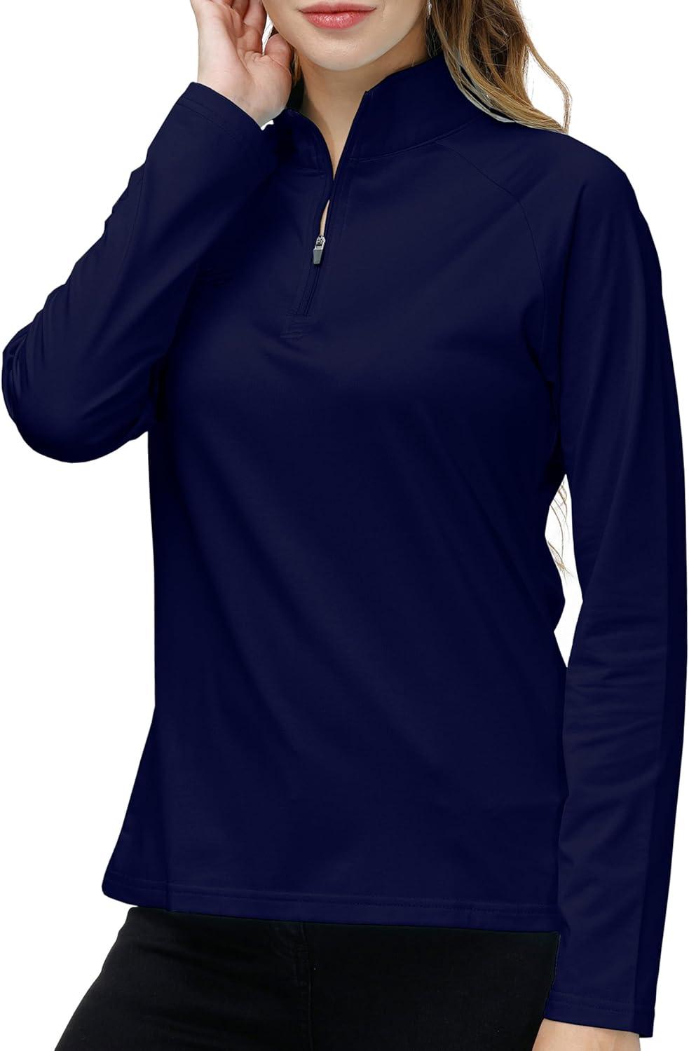 AIRIKE Golf Polo Shirts for Women Long Sleeve Colourful Quick-Dry Workwear & Activewear-Womens Athletic Apparel(Navy)
