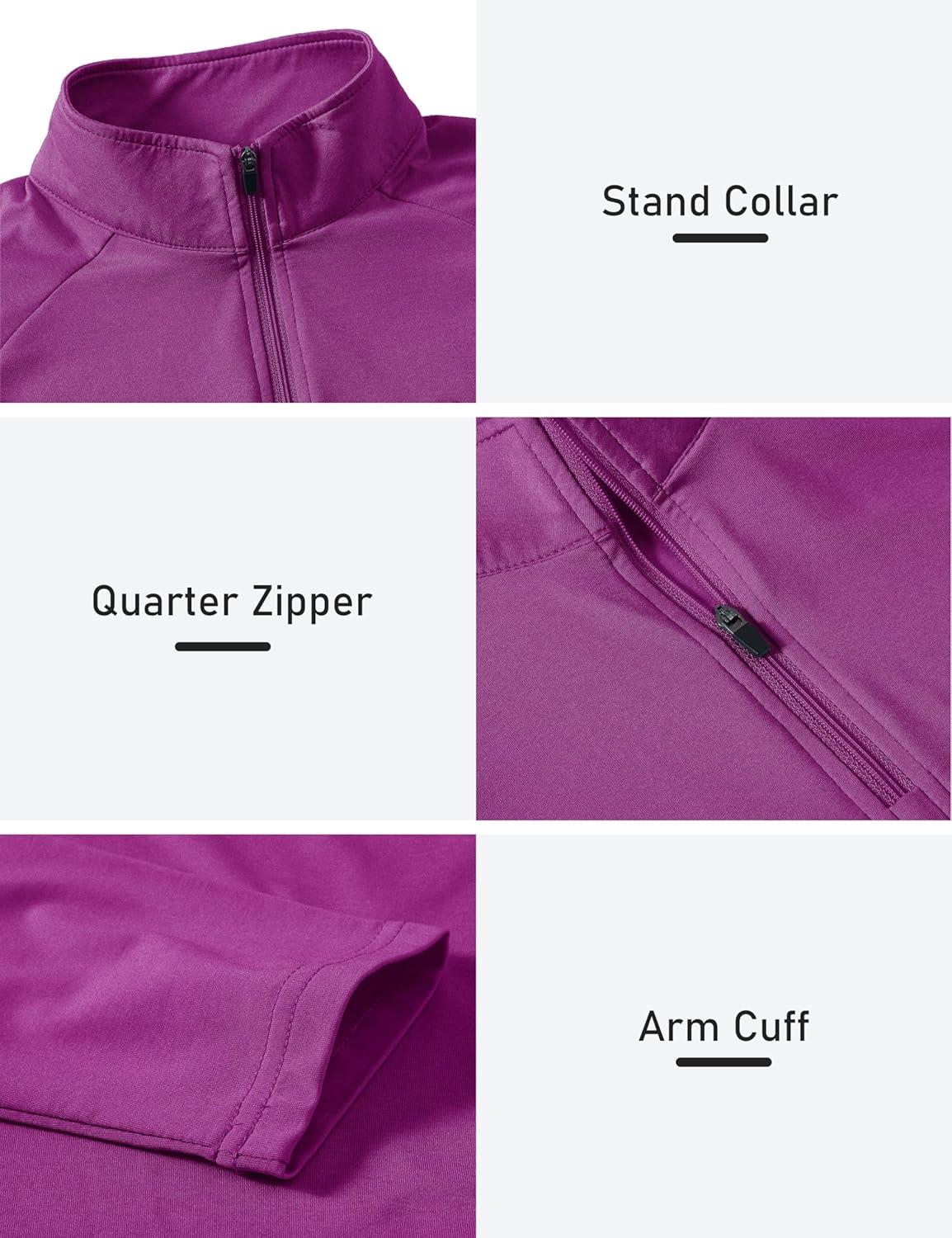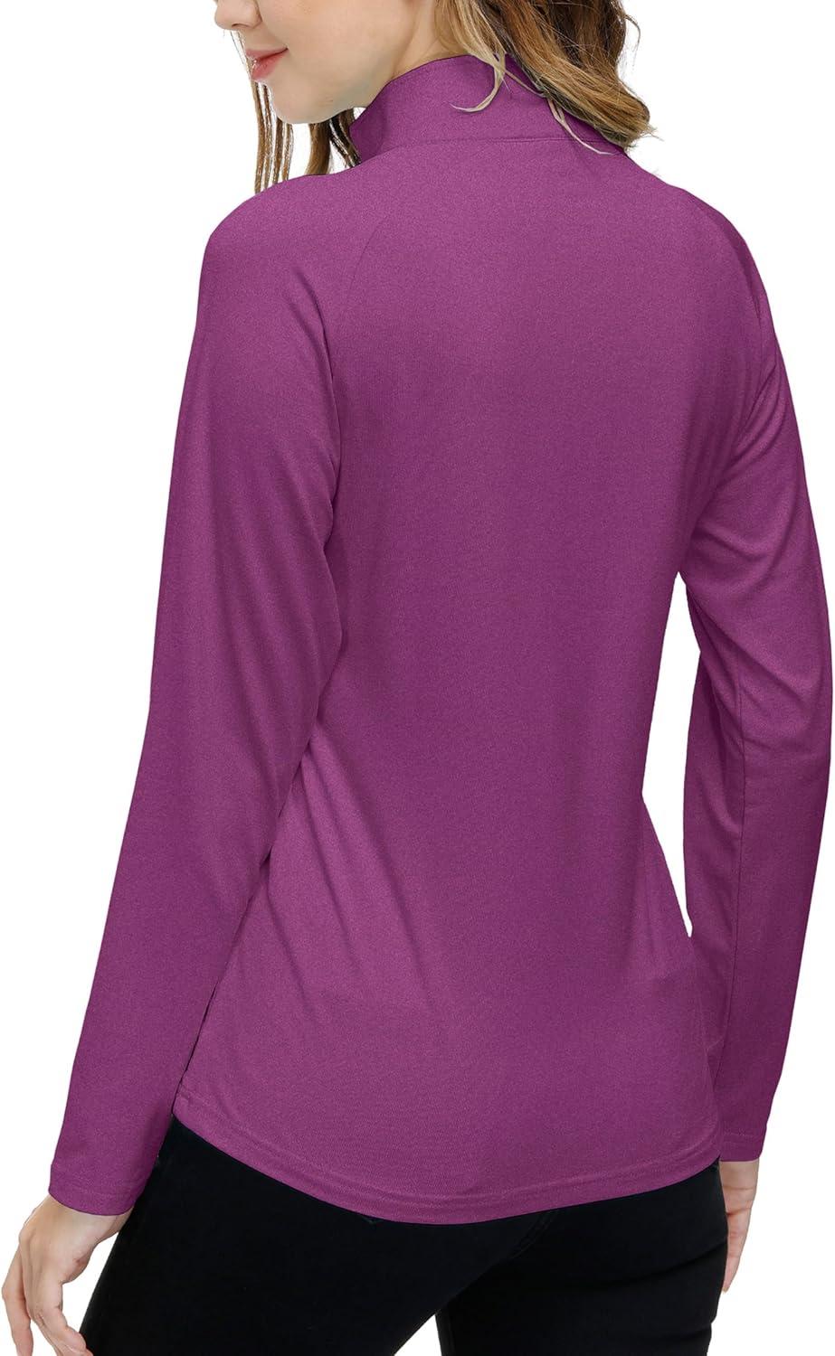 AIRIKE Long Sleeve Golf Polo Shirts for Women Stand Up Collar Thermal Fleece Womens Tank Top(Purple-red)