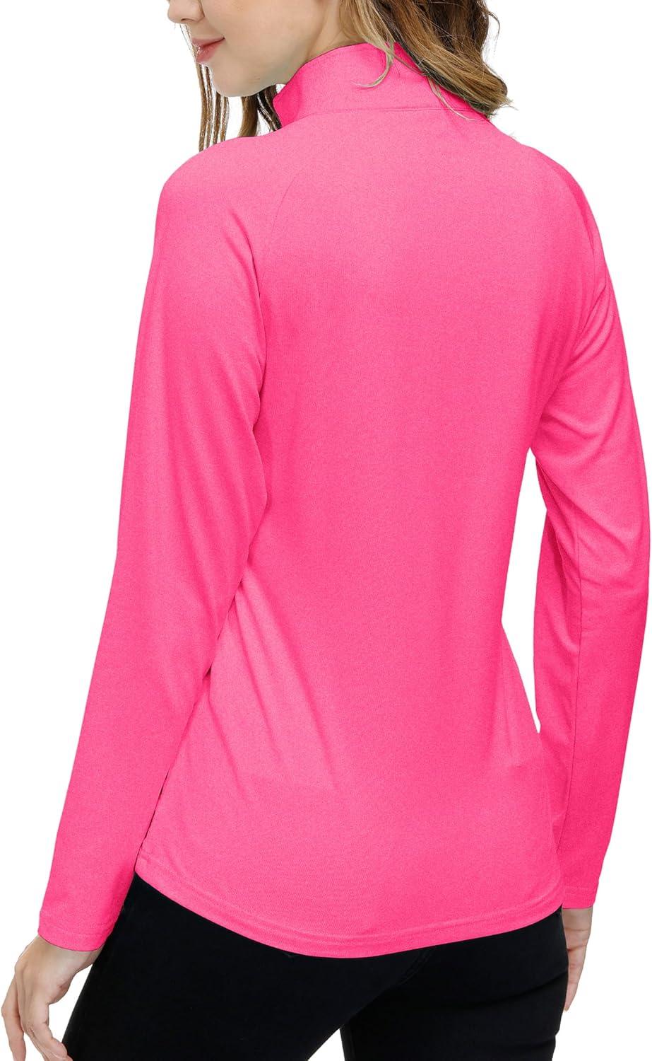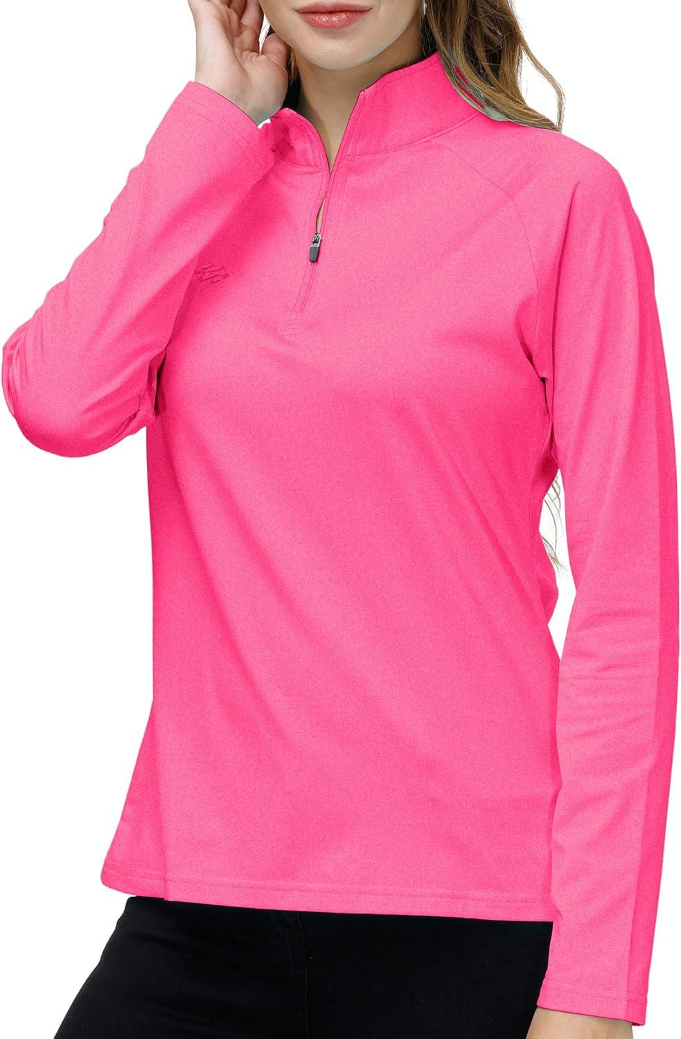 AIRIKE Golf Polo Shirts for Women Long Sleeve Colourful Quick-Dry Workwear & Activewear-Womens Athletic Apparel(Roseo)