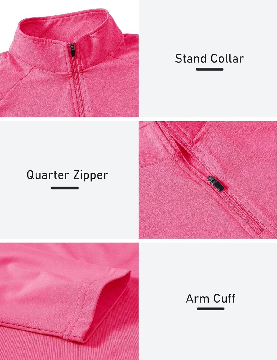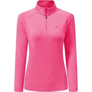 AIRIKE Long Sleeve Golf Polo Shirts for Women Stand Up Collar Thermal Fleece Womens Tank Top(Rose-red)