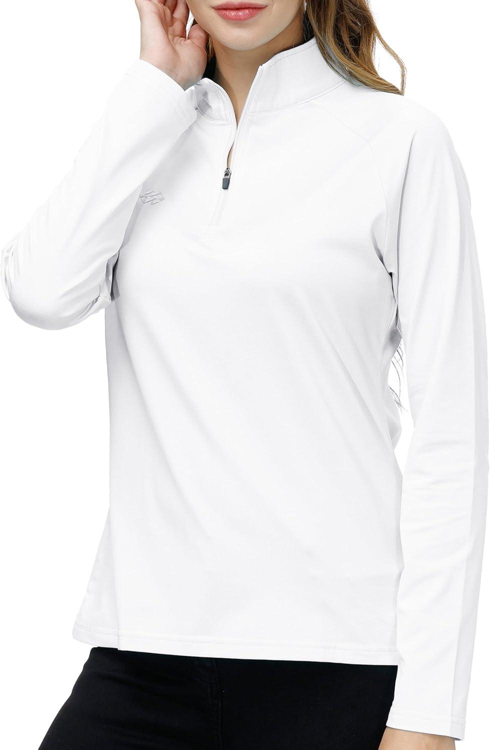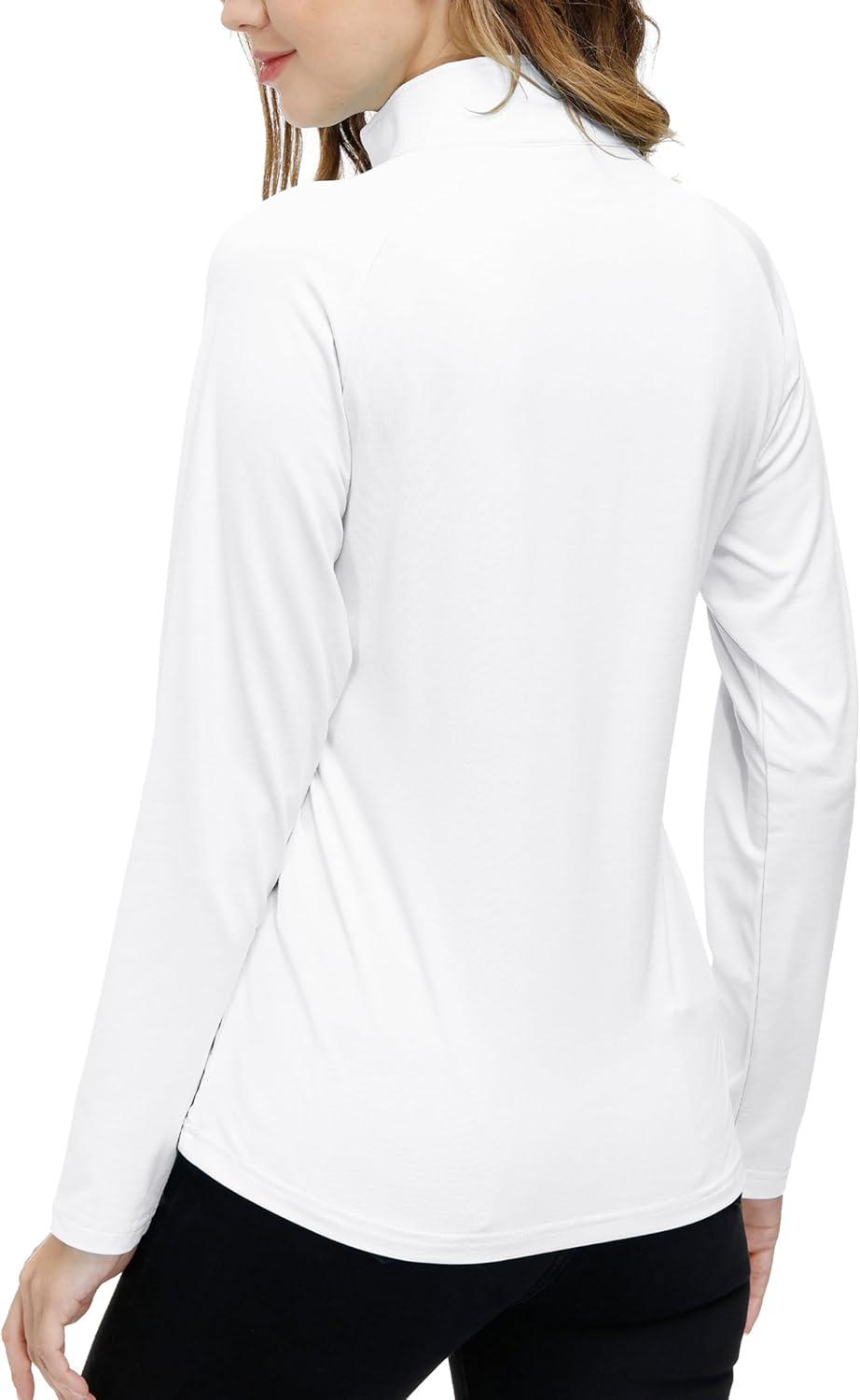 AIRIKE Long Sleeve Golf Polo Shirts for Women Stand Up Collar Thermal Fleece Womens Tank Top(White)