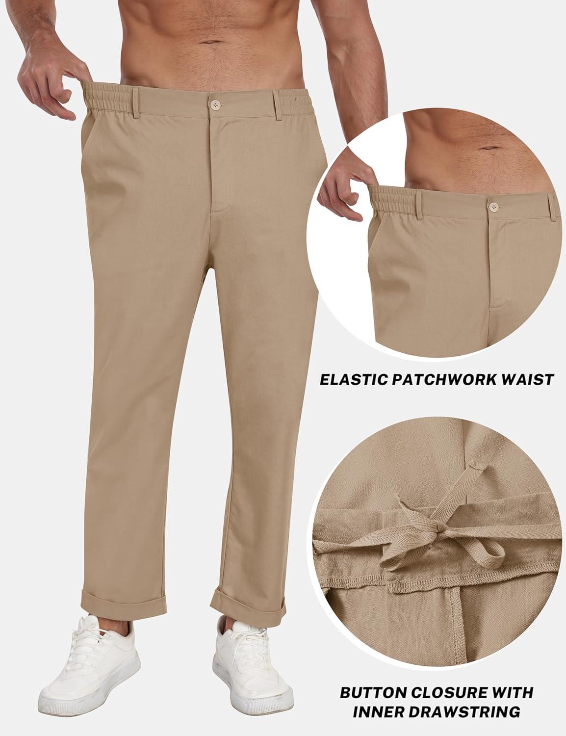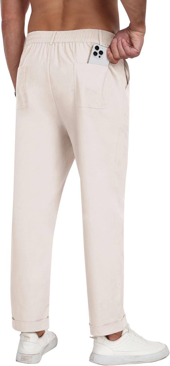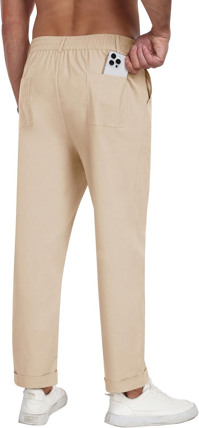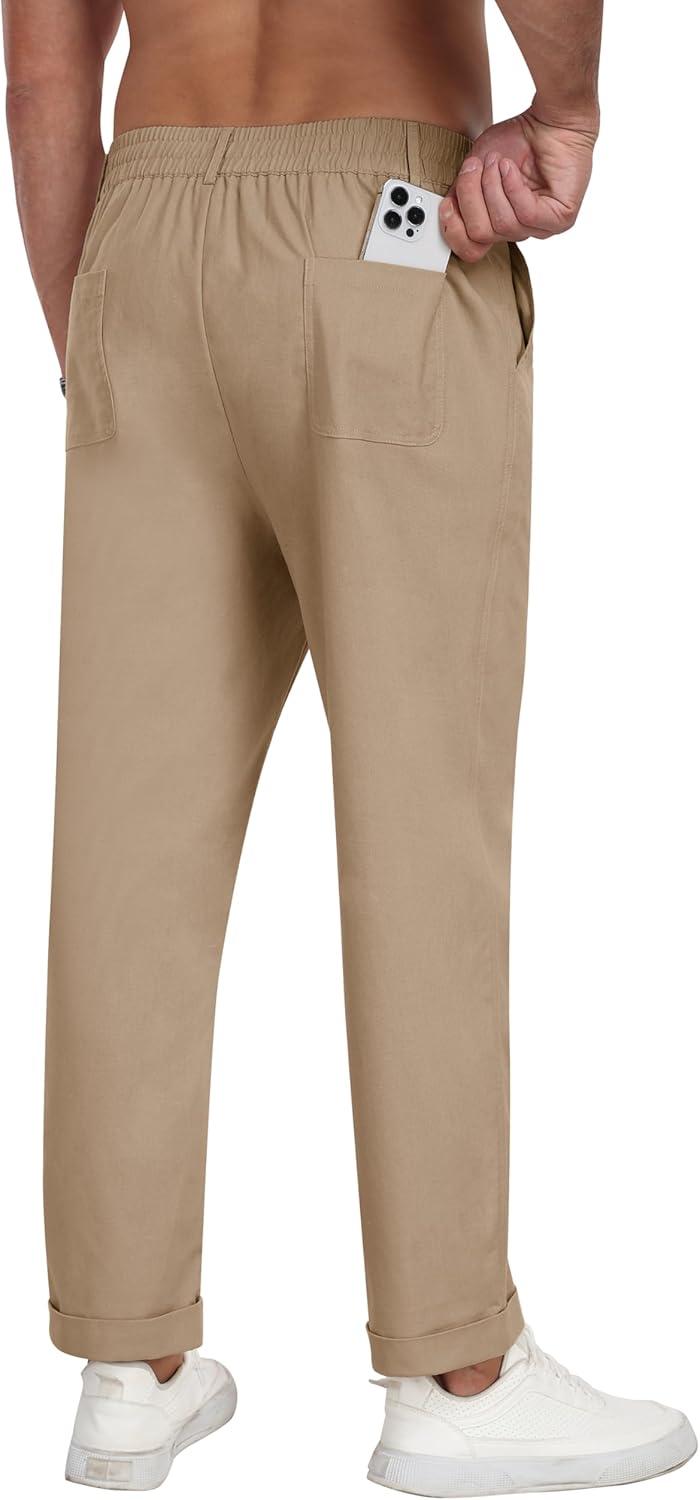 MoFiz Mens Casual Pants Lightweight Linen Summer Beach Lounge Pants(Khaki)