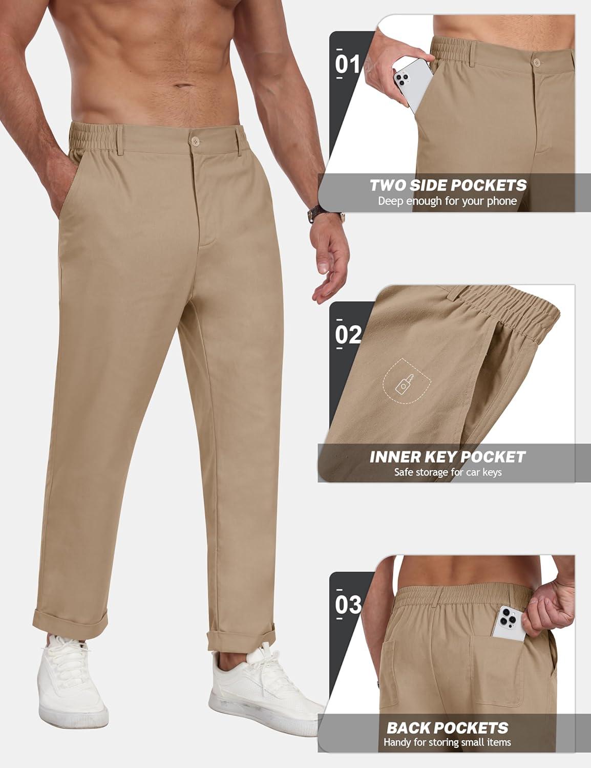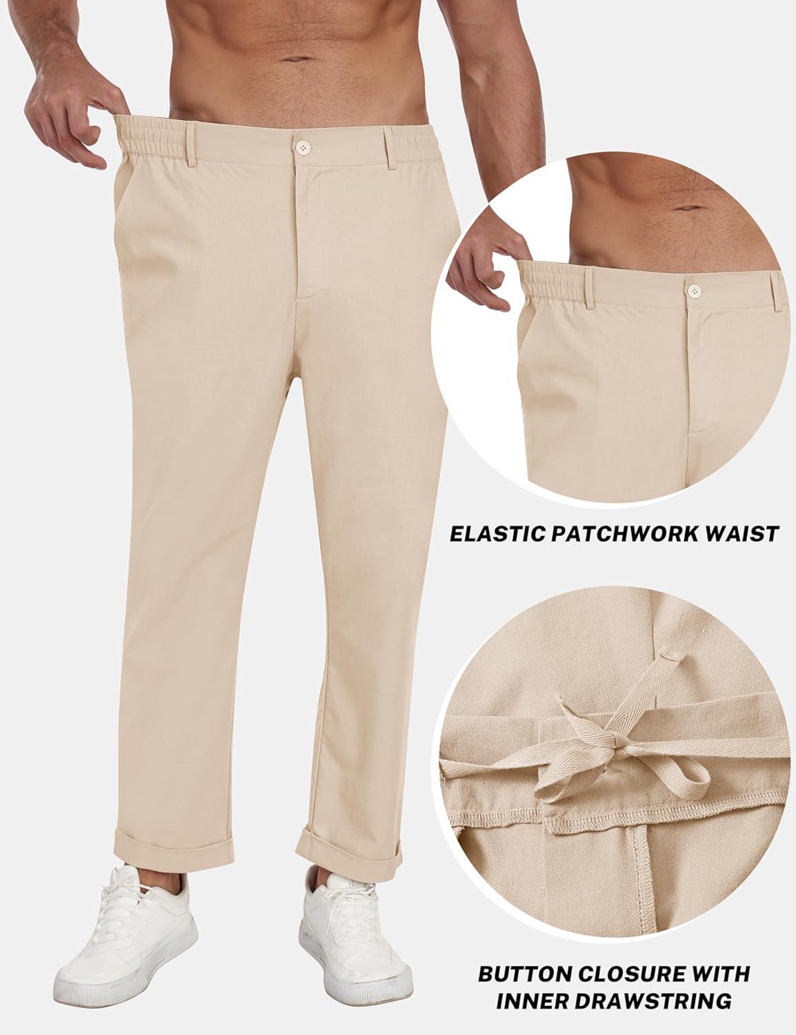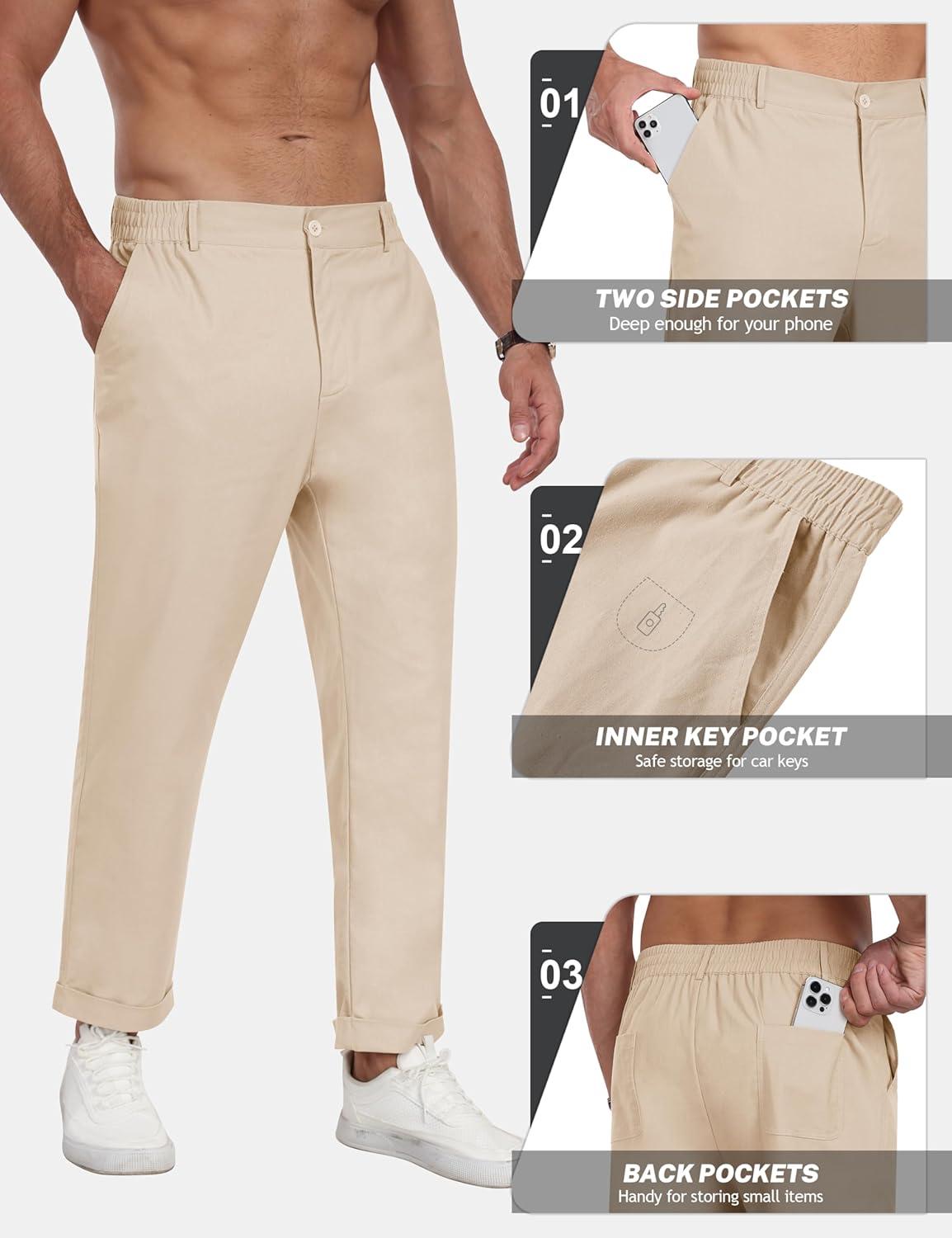 MoFiz Mens Casual Pants Lightweight Linen Summer Beach Lounge Pants(Khaki)