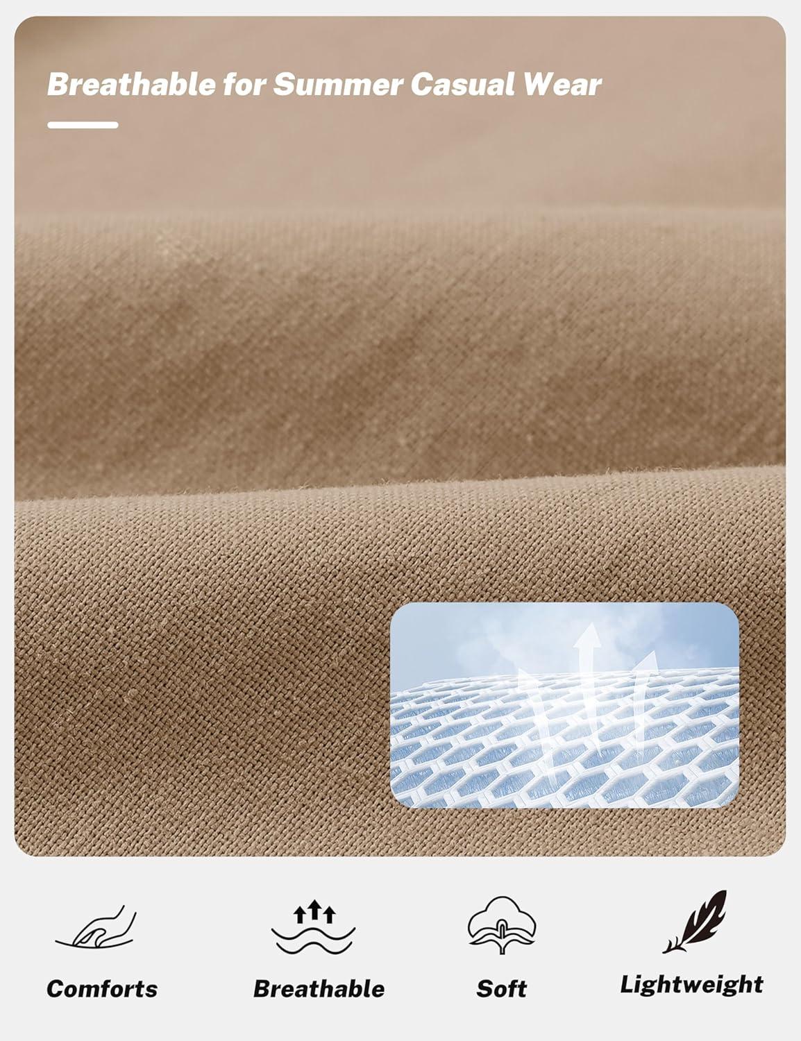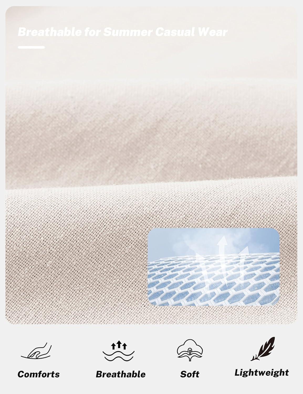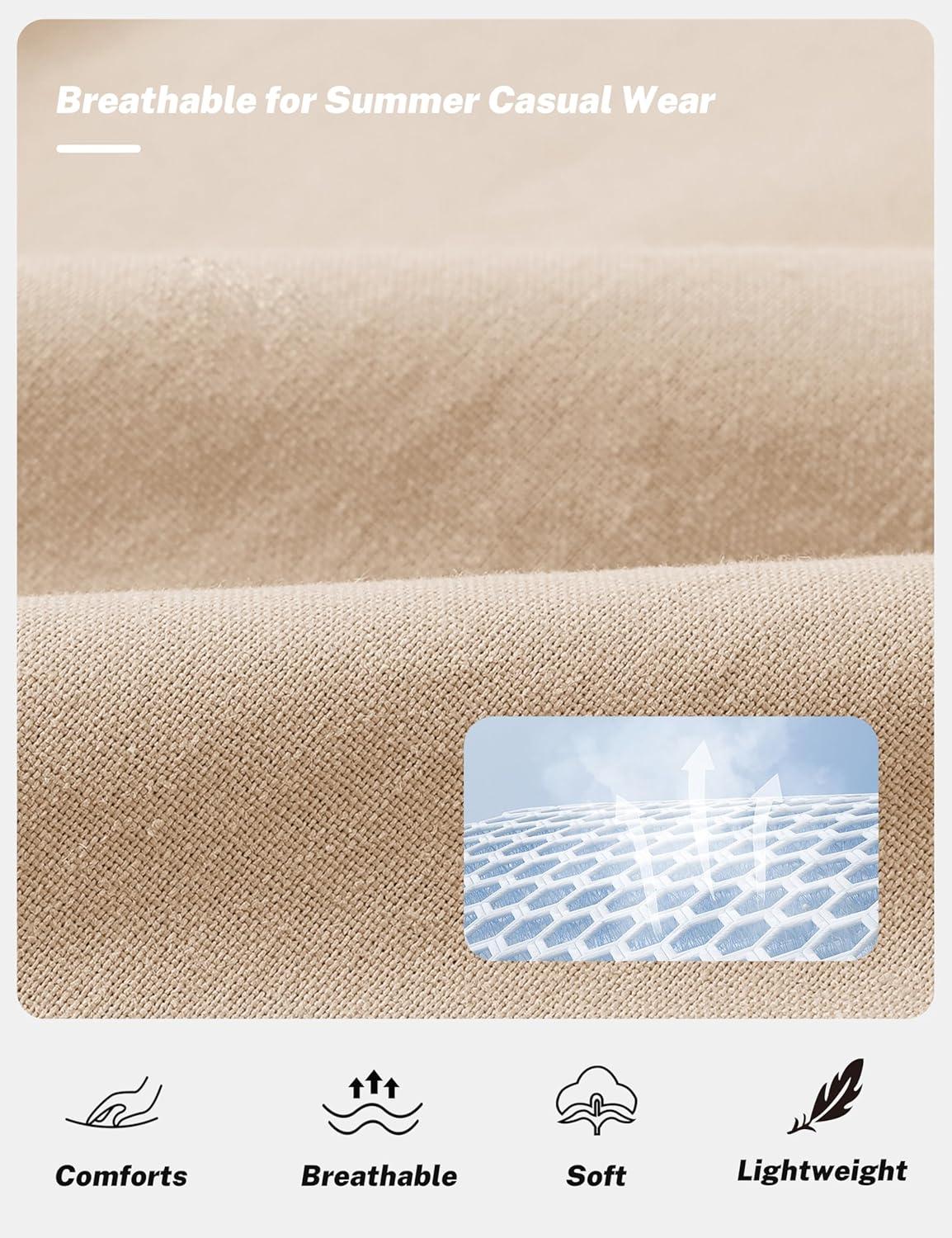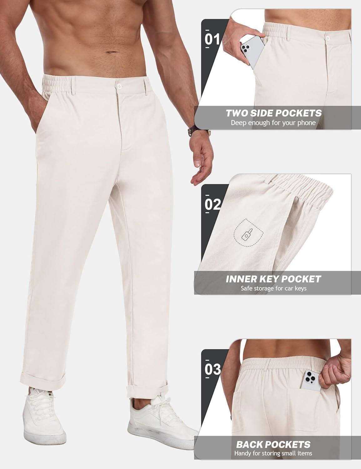 MoFiz Mens Casual Pants Lightweight Linen Summer Beach Lounge Pants(Khaki)