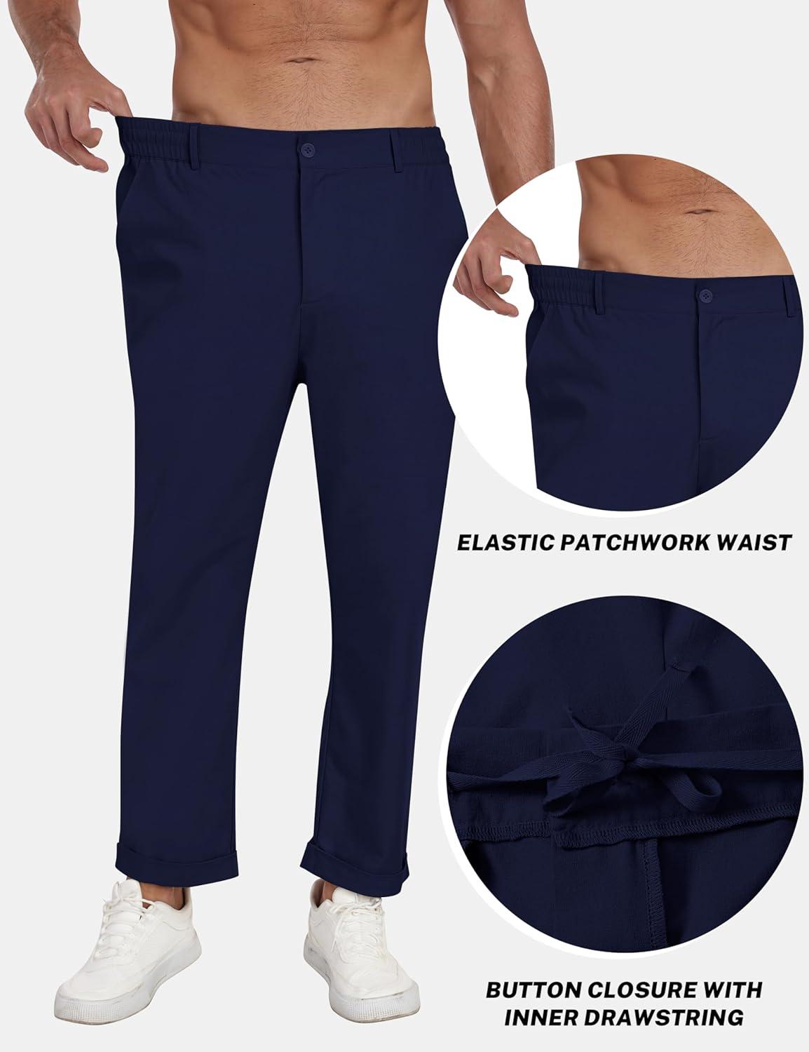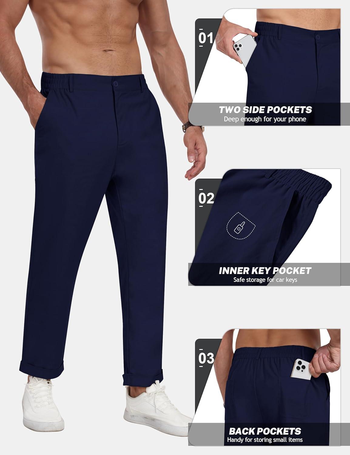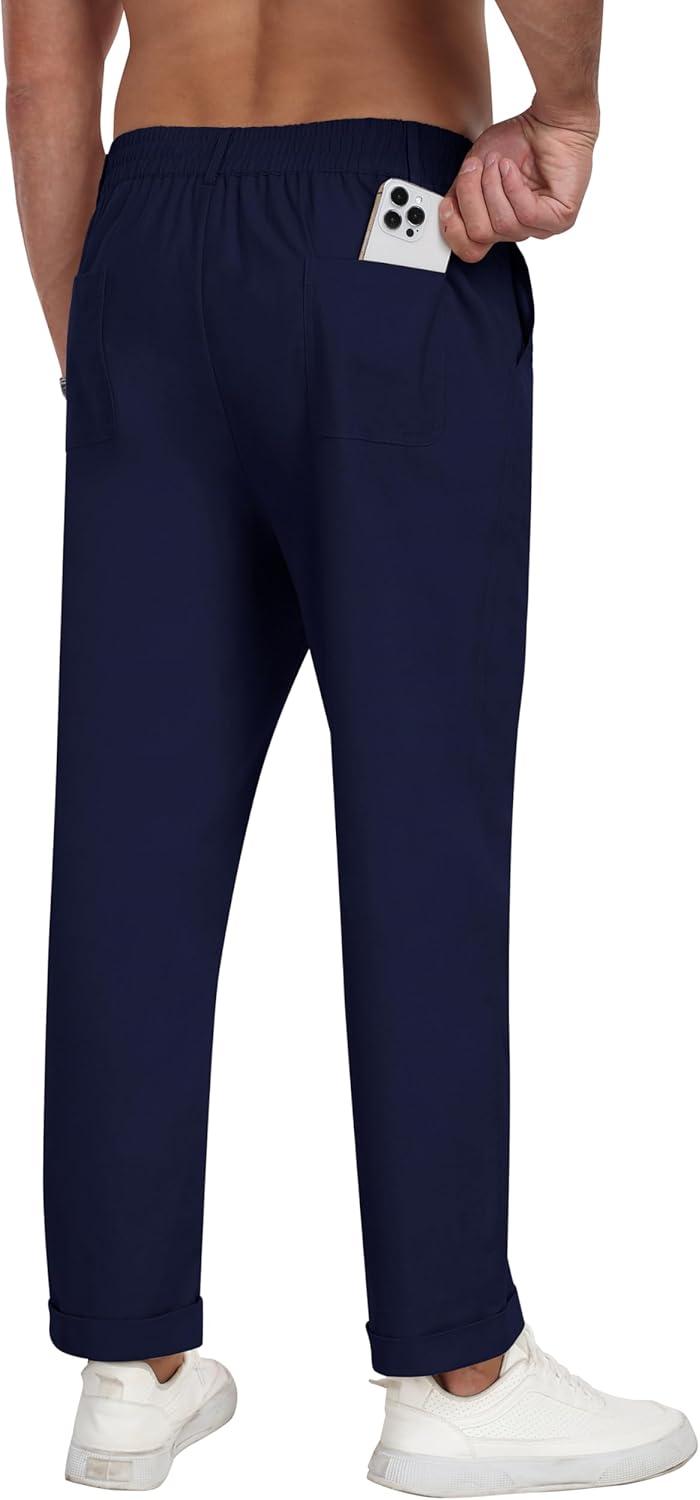 MoFiz Mens Casual Pants Lightweight Linen Summer Beach Lounge Pants(Navy Blue)