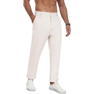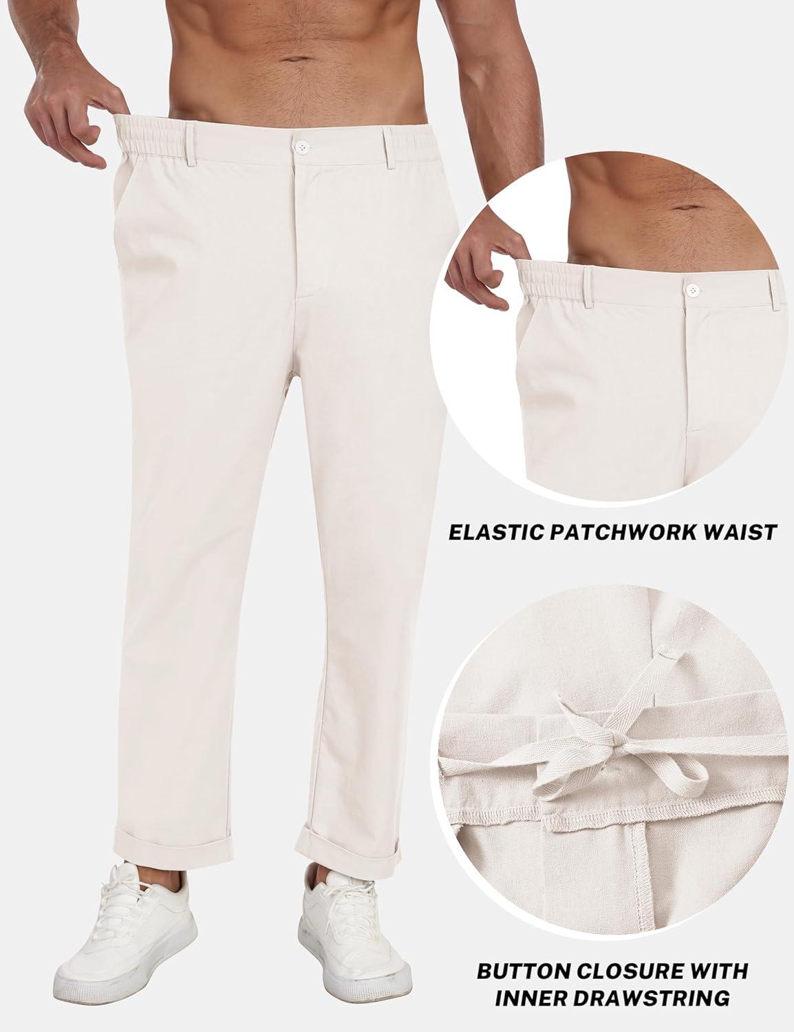 MoFiz Mens Casual Pants Lightweight Linen Summer Beach Lounge Pants(White)