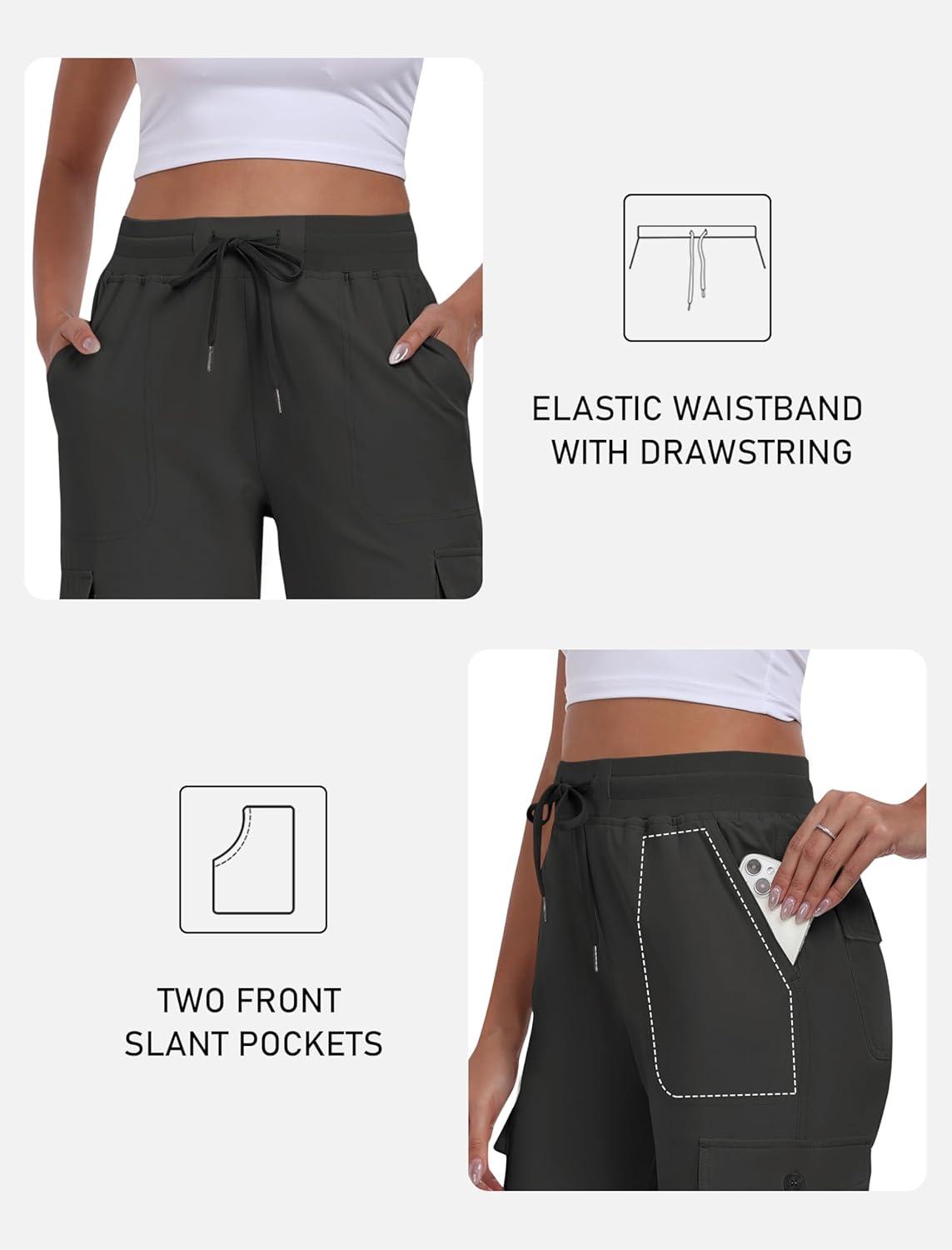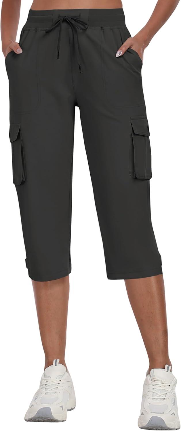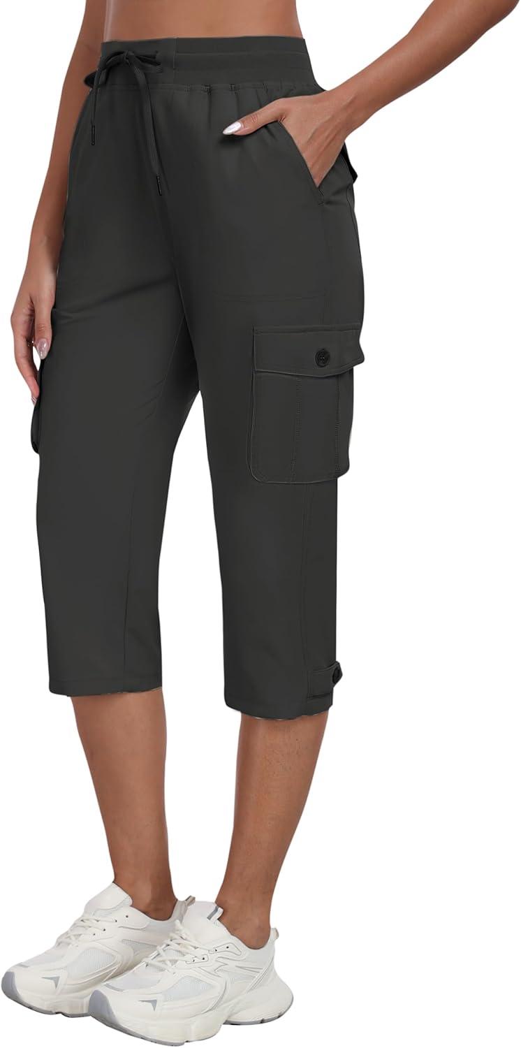 MoFiz Hiking Pants Women Capri Cargo Pants Summer Pants 3/4 Long Pants Lightweight Quick Dry with Pocket(Dark Gray)