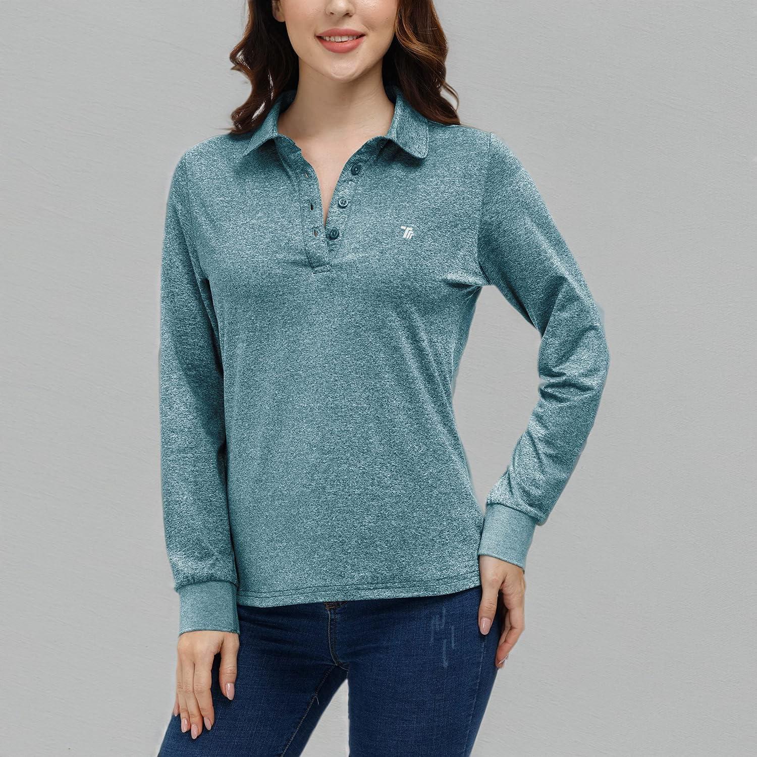 AIRIKE Golf Polo Shirts for Women Long Sleeve Colourful Quick-Dry Workwear & Activewear-Womens Athletic Apparel(Blue 2)
