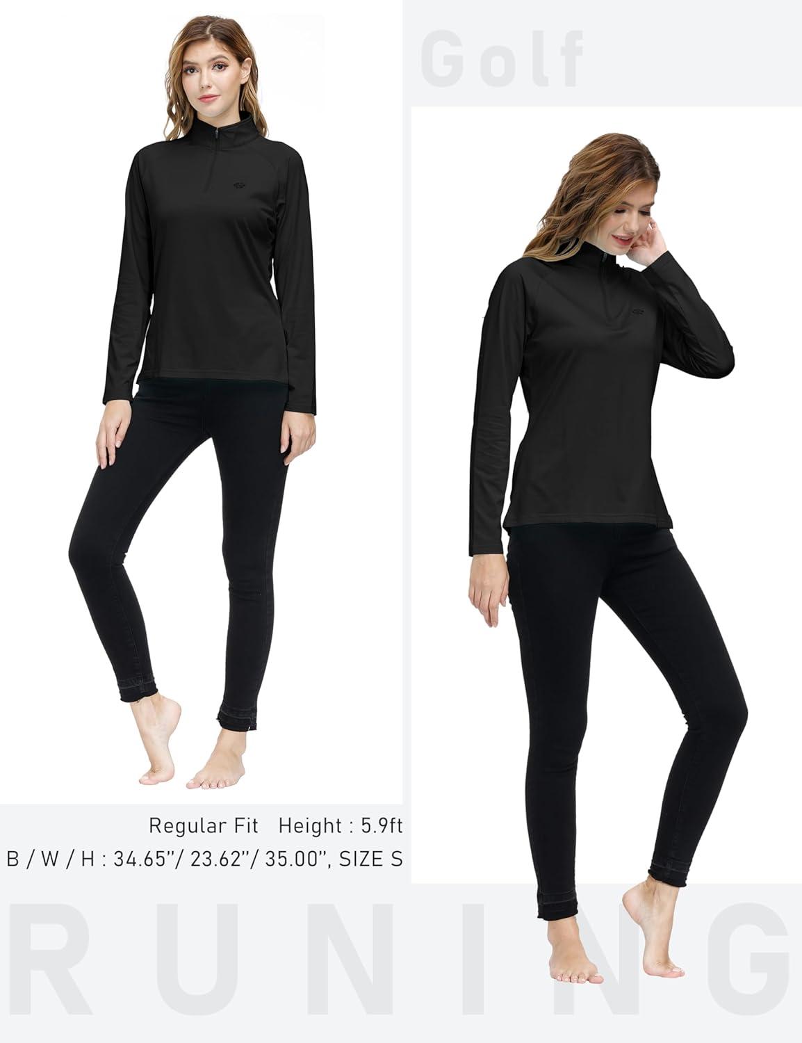 AIRIKE Long Sleeve Golf Polo Shirts for Women Stand Up Collar Thermal Fleece Womens Tank Top(Black)