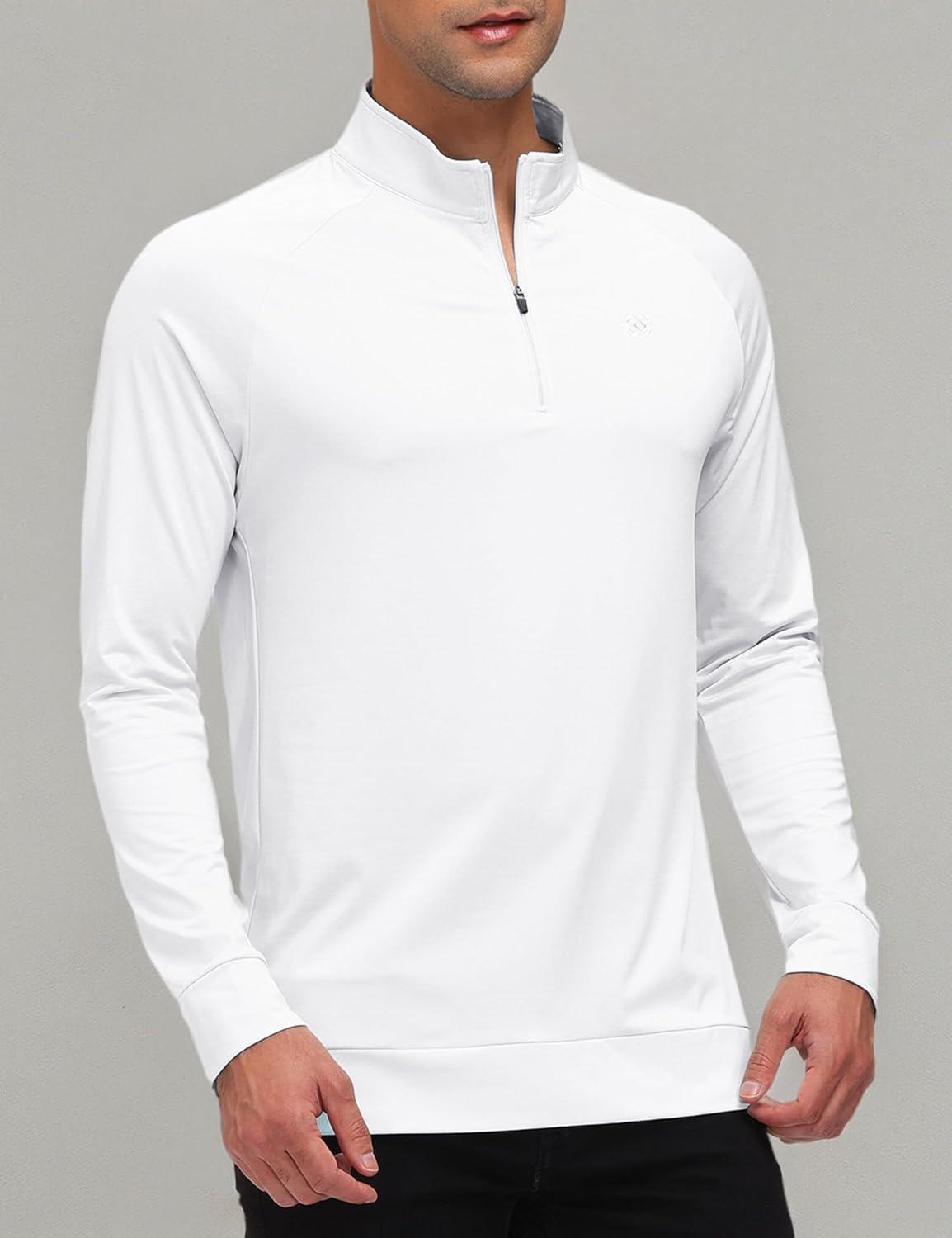 JINSHI Mens Long Sleeve Quarter Zip Pullover Stand Collar Active Golf Polo Shirt 1/4 Zipper Fleece Lining Workout Top(A-white)