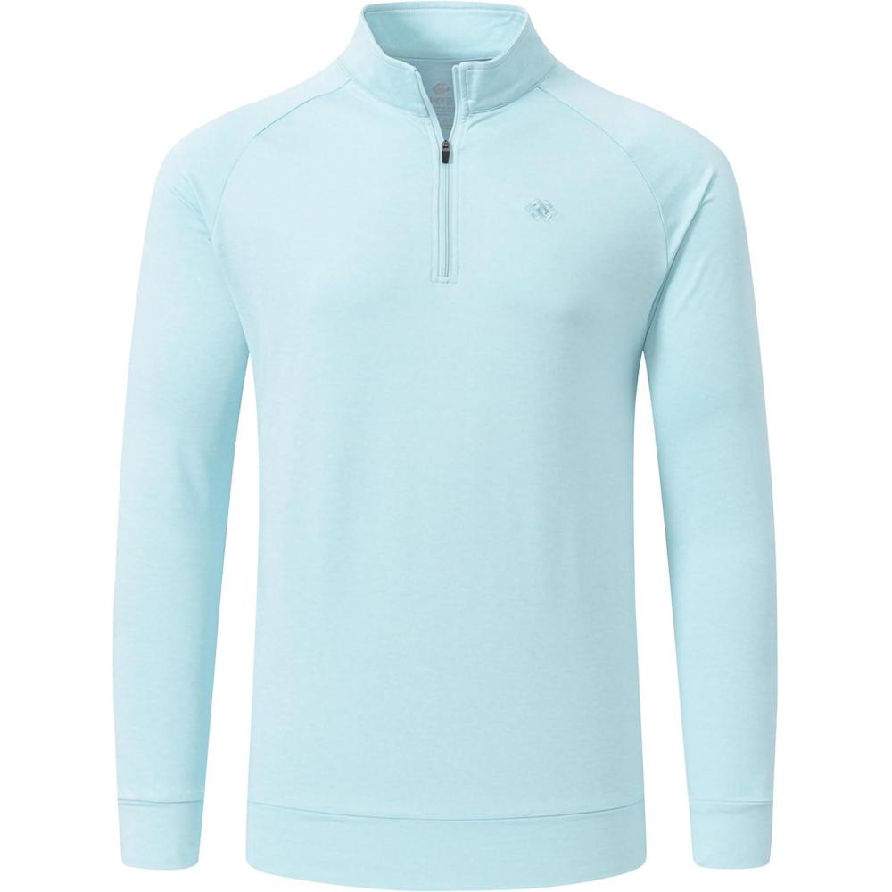 JINSHI Mens Long Sleeve Quarter Zip Pullover Stand Collar Active Golf Polo Shirt 1/4 Zipper Fleece Lining Workout Top(Sky Blue)