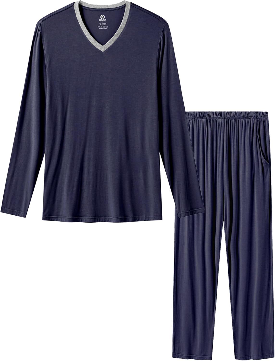 JINSHI Men’s Pajama Sets Sleepwear Nightwear Lightweight Quick Dry Soft 2 Piece Long Sleeve Mens Loungewear Sets with Pocket(A2-navy)