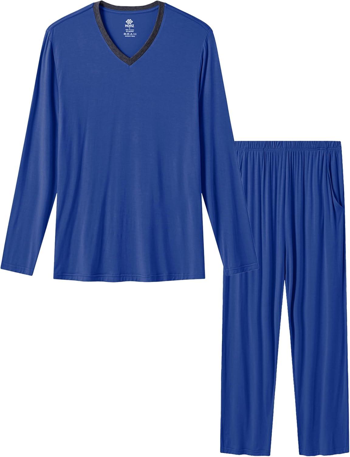 JINSHI Men’s Pajama Sets Sleepwear Nightwear Lightweight Quick Dry Soft 2 Piece Long Sleeve Mens Loungewear Sets with Pocket(A4-deep Blue)