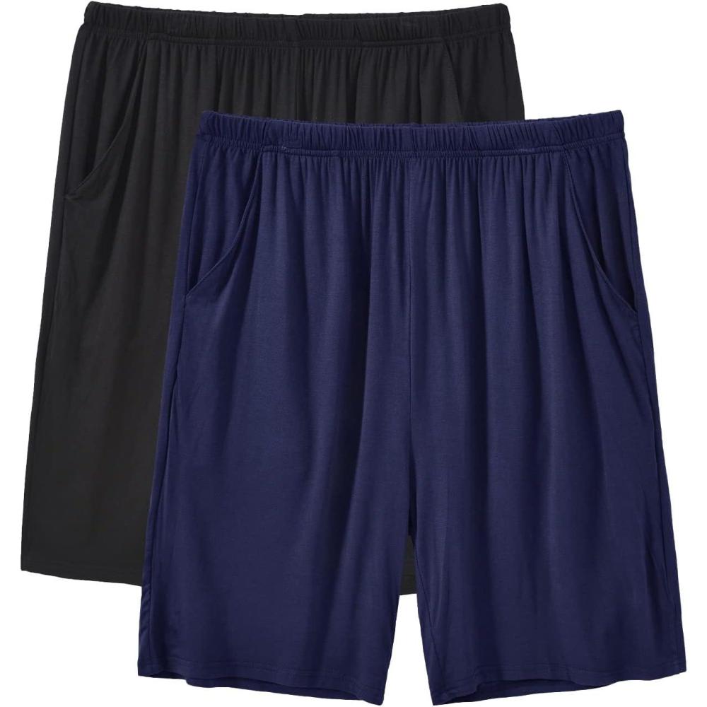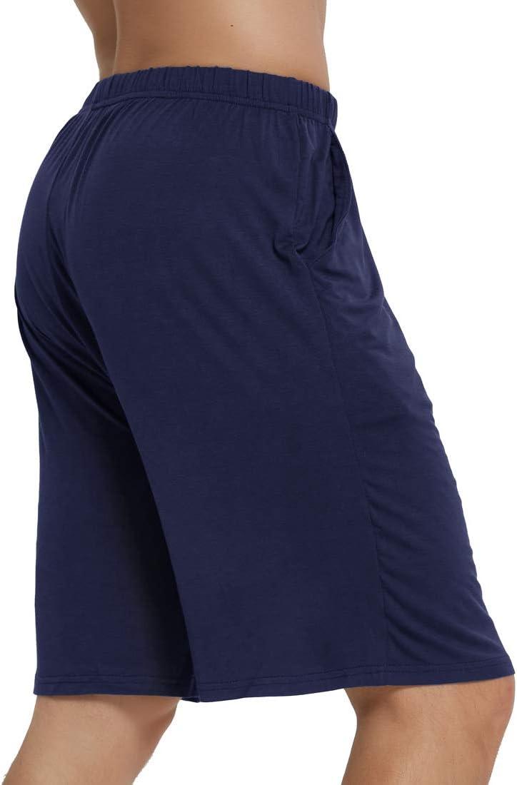 JINSHI Men’s Pajama Shorts Soft Comfortable Lightweight Elastic Drawstring Men Lounge Sleep Shorts with Pockets(Black/Navy Blue)