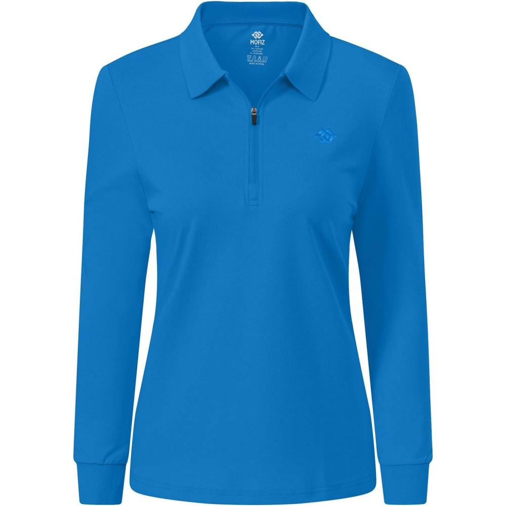 JINSHI Women’s Golf Polo Shirt Long Sleeves Zip Up Sport Active Shirts Quick Dry Athletic T-Shirt Casual Tennis Tops Slim Fit(Lake Blue)