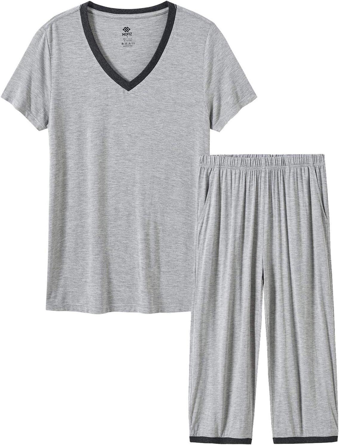 JINSHI Women’s Pajamas Set Short Sleeve Top and Capri Pants Lightweight Sleepwear Comfy Pjs Lounge Set with Pockets(Light Grey)