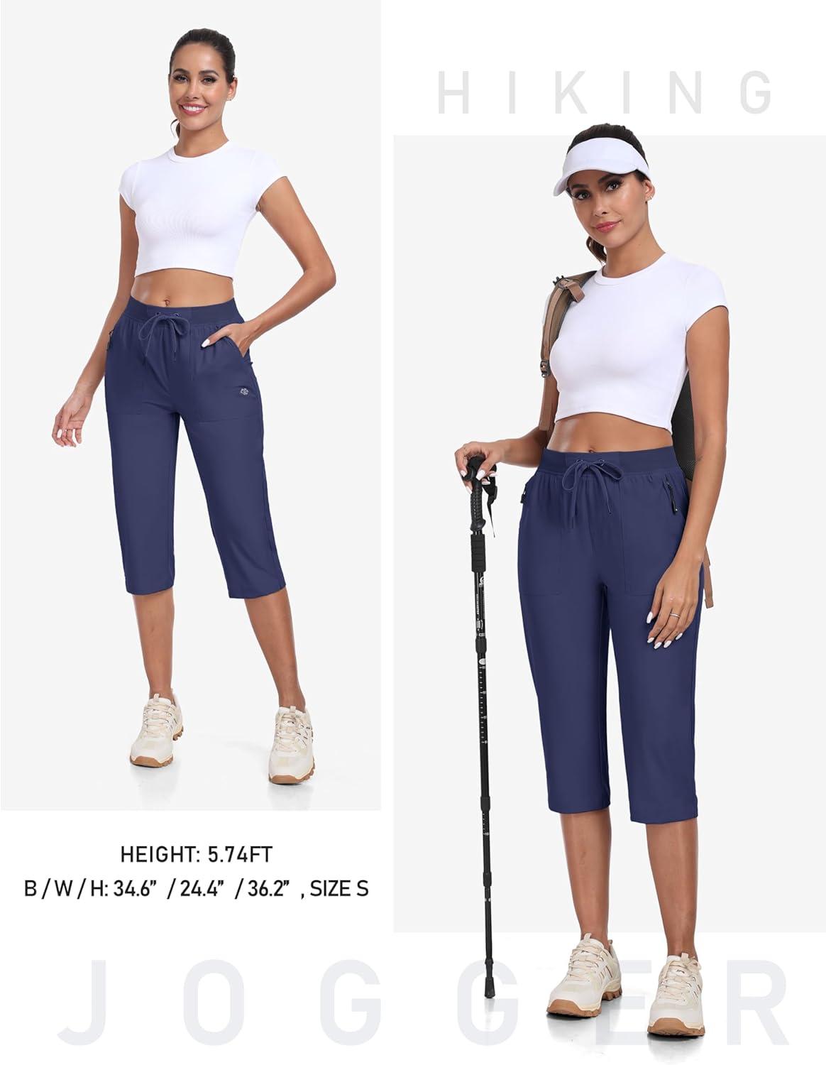 MoFiz Capri Pants for Women Lightweight Ice Cool Capris for Women Casual Summer with Zipper Pockets(D03-navy Blue)