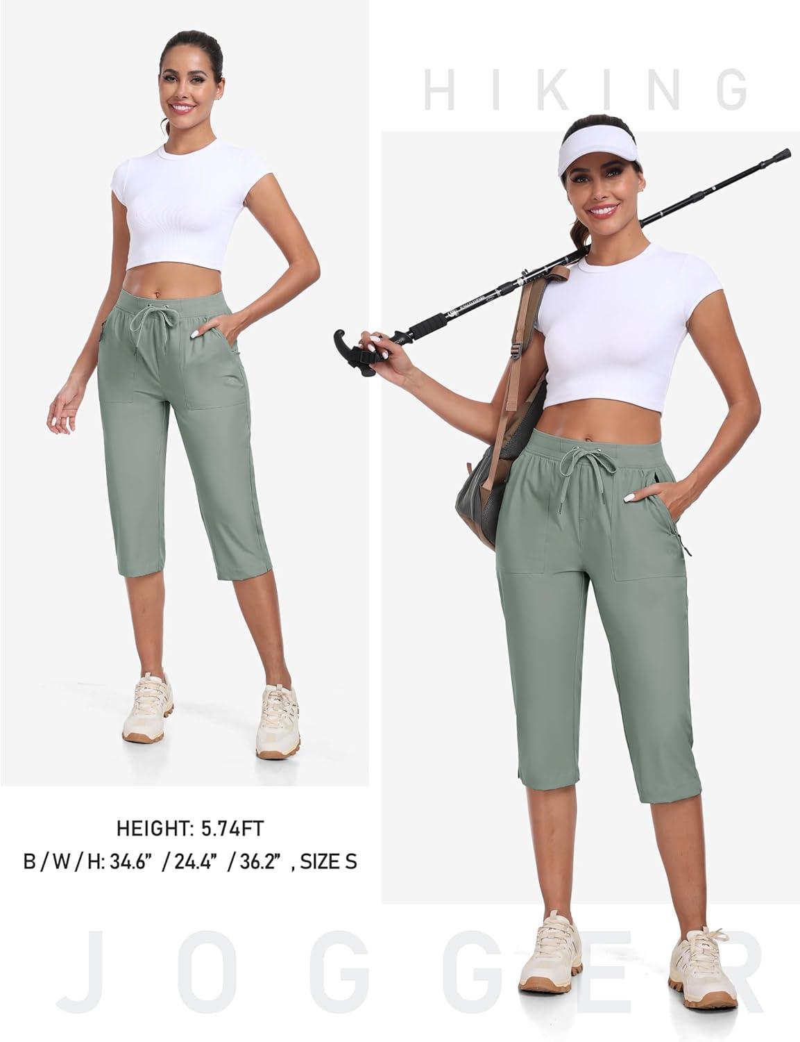 MoFiz Capri Pants for Women Lightweight Ice Cool Capris for Women Casual Summer with Zipper Pockets(D04-gray Green)