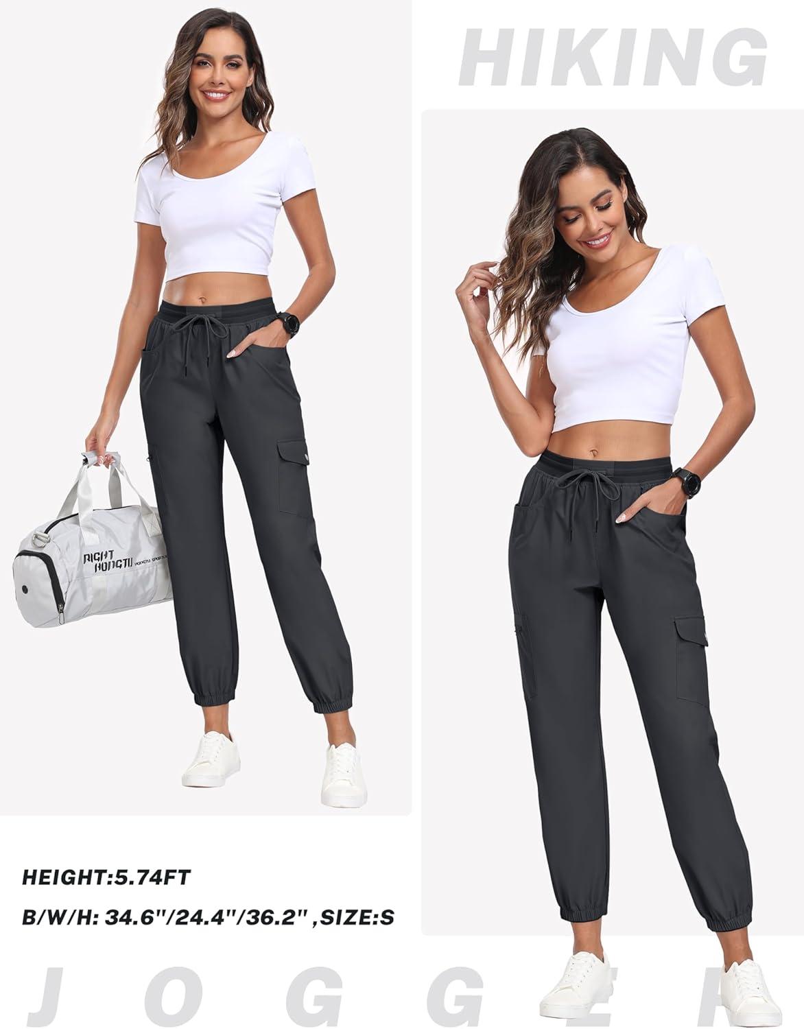 MoFiz Cargo Pants Women Lightweight Quick Dry Elastic Waist Cargo Joggers for Women High Wasited Dark Gray XX-Large