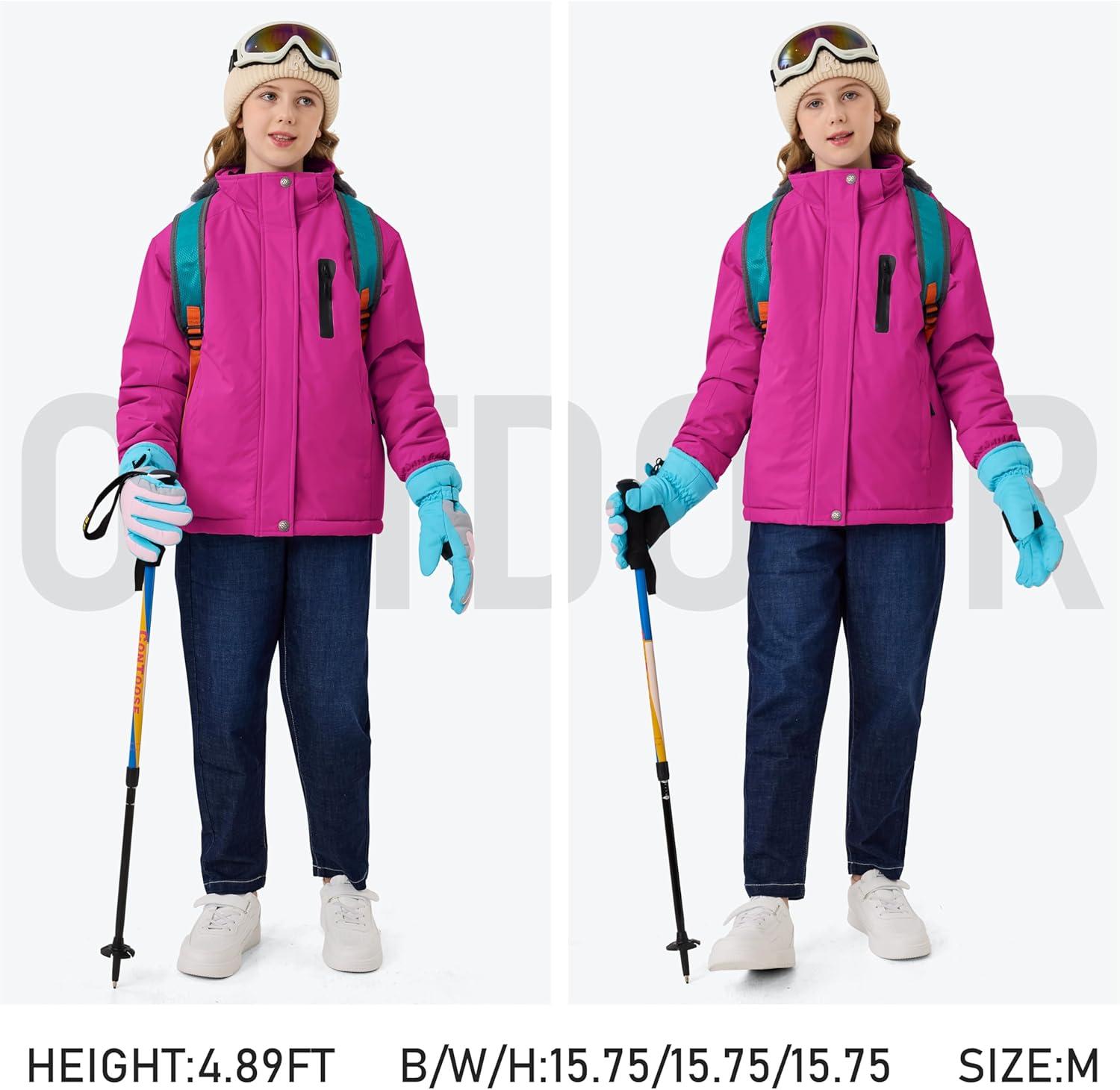 MoFiz Girls Ski Jacket Warm Winter Jacket Windproof Fleece Winter Coat Snow Jackets with Zipper Pockets(Z-rose Red)