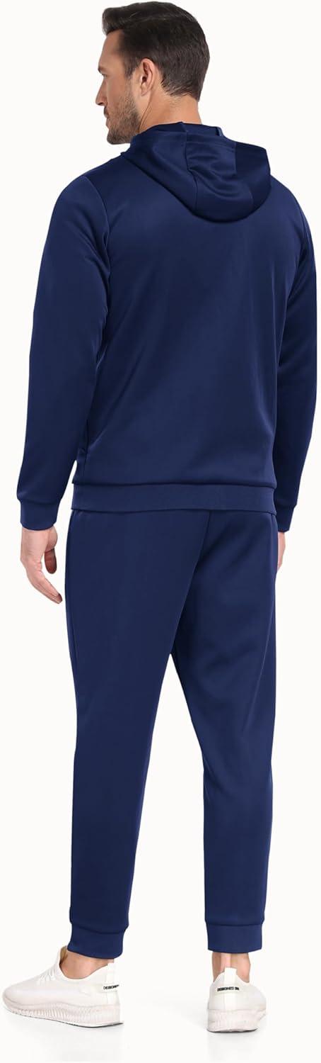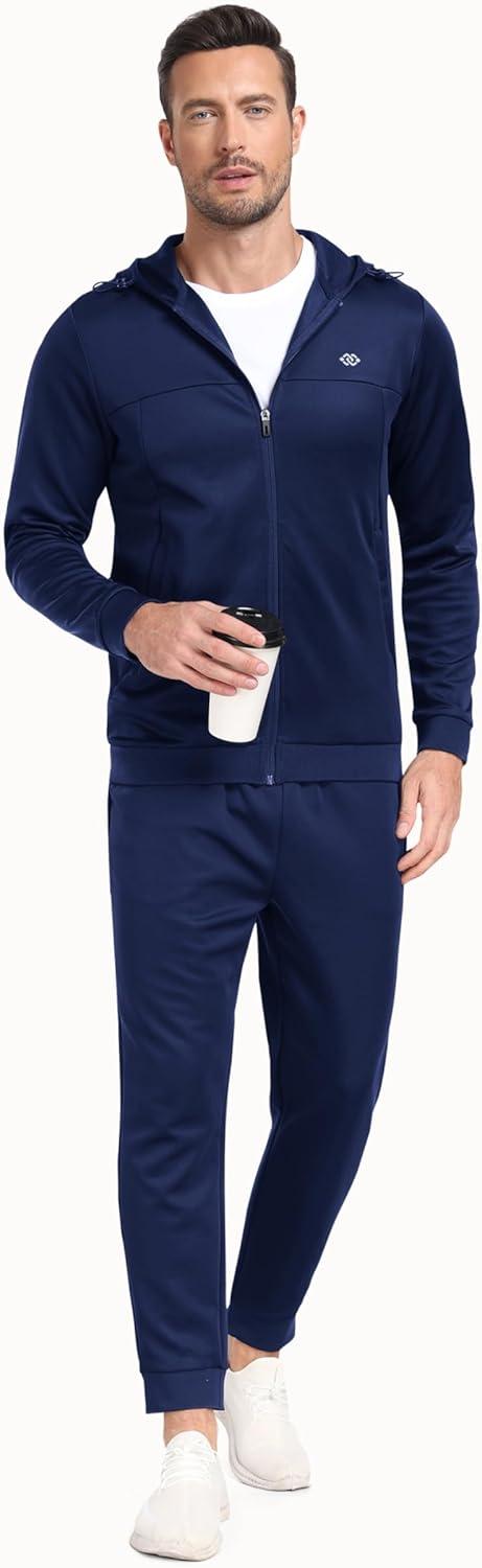 MoFiz Mens 2 Piece Tracksuit Casual Sweatsuits Full Zip Track Suits Jogging Athletic Hooded Gym Sport Running Suit Sets Zipper Pockets Navy L