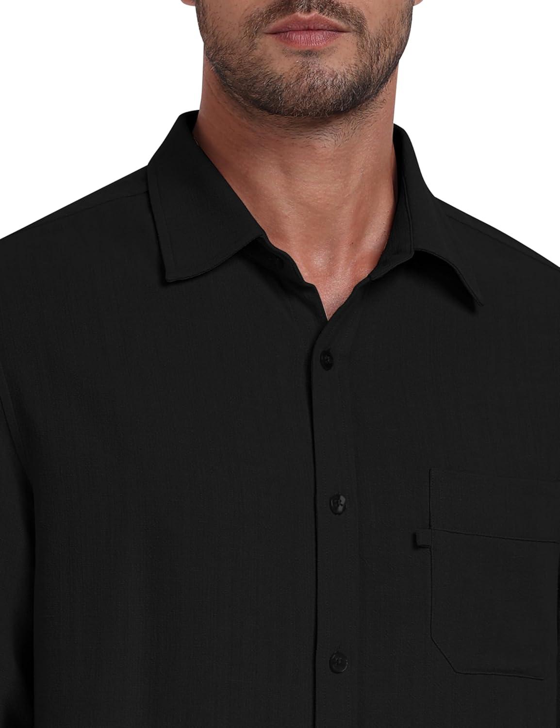MoFiz Mens Button Down Shirts Long Sleeve Casual Linen Shirts with Pockets Beach Vacation Spring Shrits(Black)