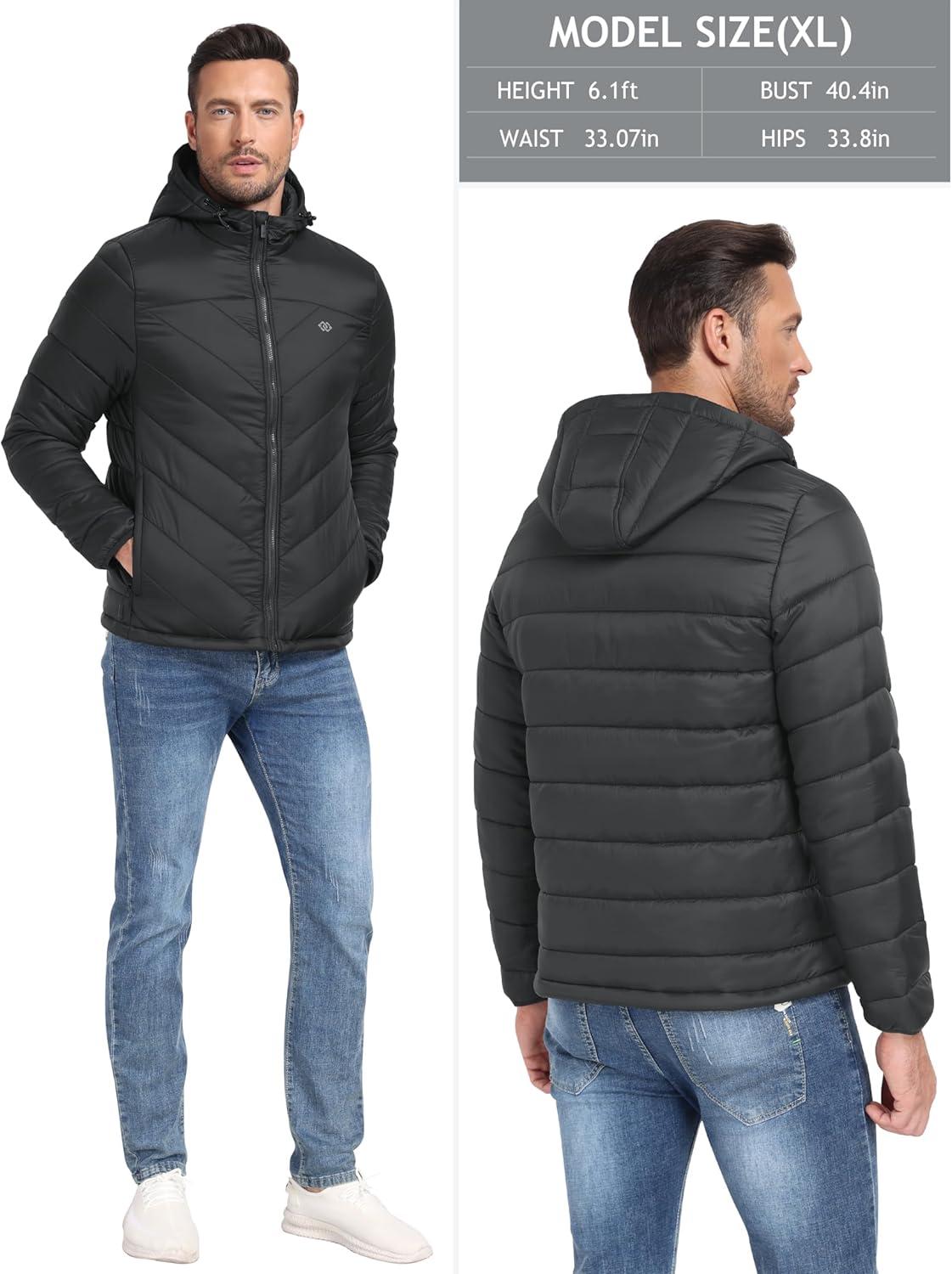 MoFiz Men’s Lightweight Puffer Jacket Hooded Insulated Winter Puffy Coat Full Zip Water Resistant Windproof Hiking Jacket(B-dark Grey)