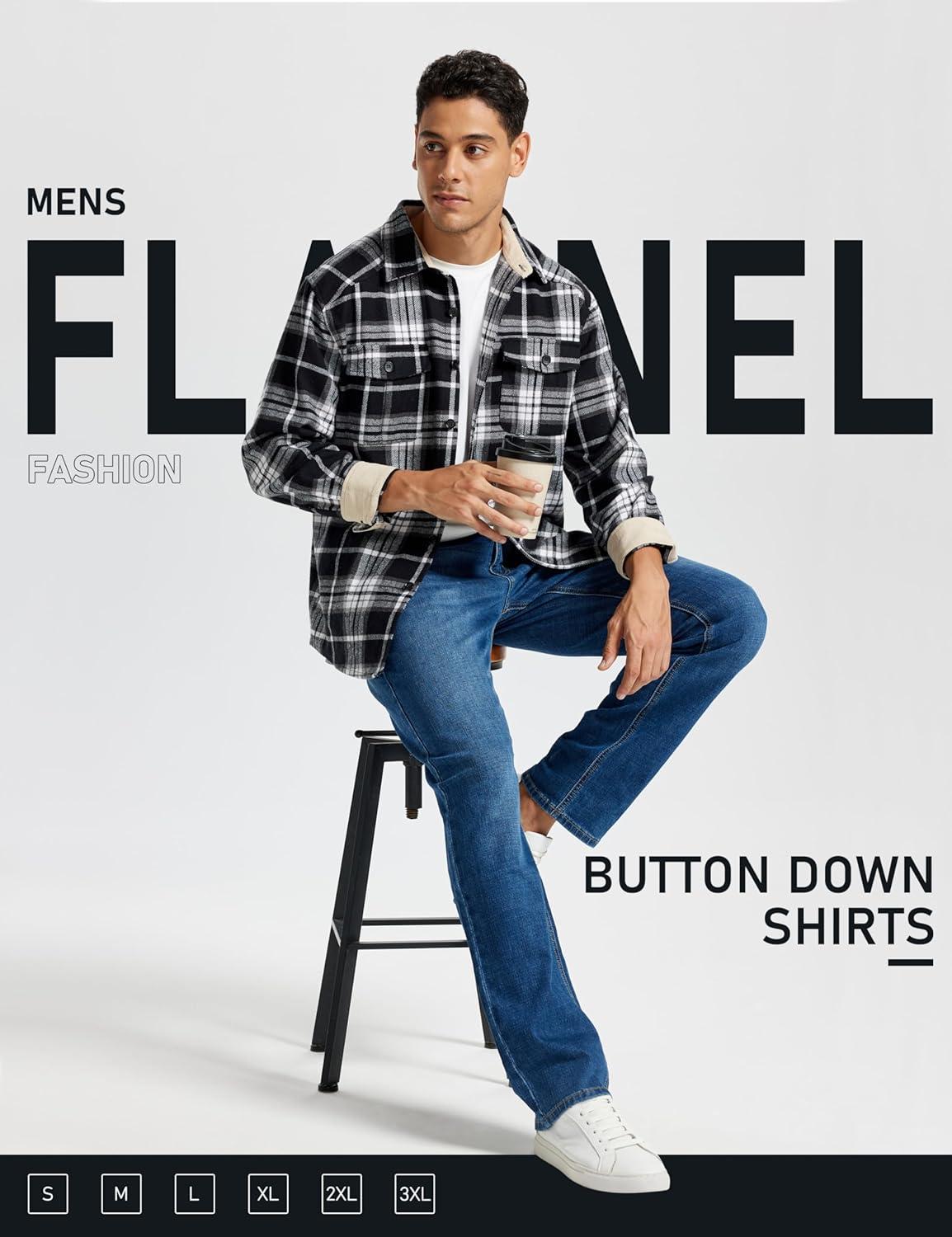 MoFiz Men’s Long Sleeve Plaid Flannel Shirts Cotton Plaid Button Down Shirts for Men Soft Regular Fit Mens Casual Shirts(Black White)