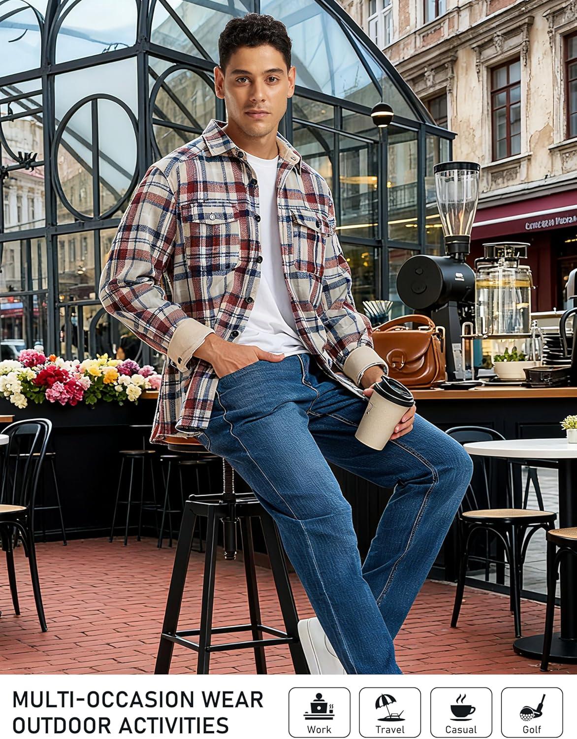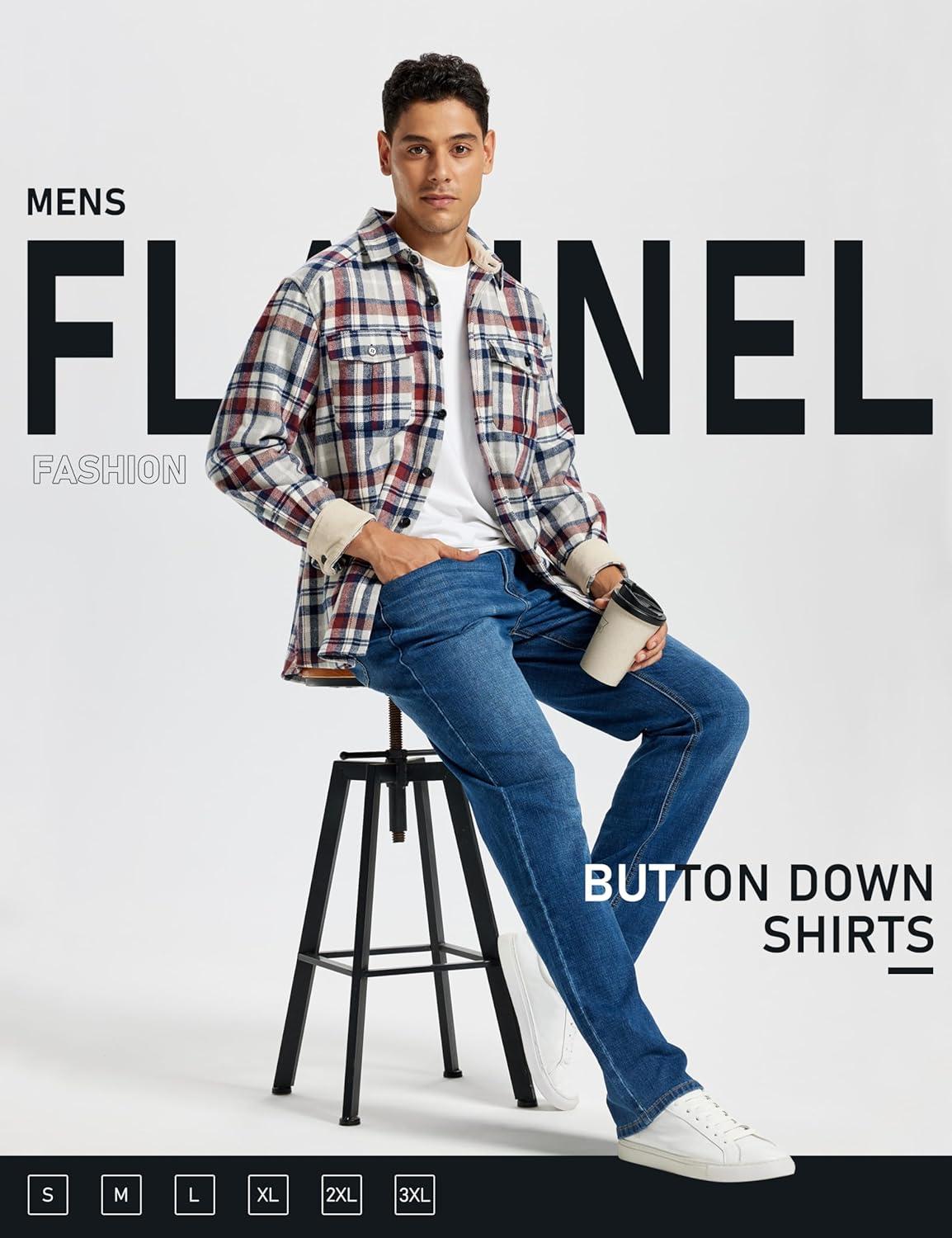 Premium Fabric: Mofiz men's flannel shirts long sleeve are crafted from a premium blend of 55% cotton and 45% polyester, ensuring superior softness, warmth and durability. Lightweight and breathable,they provide optimal insulation while maintaining comfort. Our mens button down shirts long sleeve are pre-shrunk to prevent shrinkage, button damage or pilling after washing.