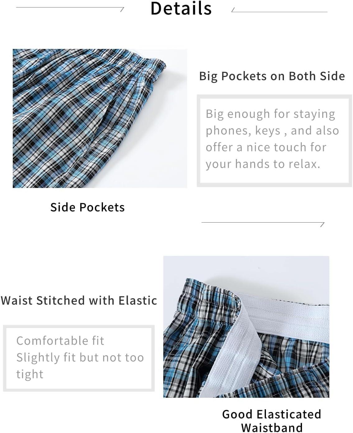 MoFiz Mens Pajama Bottoms Cotton 3 Pack Lounge Pants Set with Pockets Drawstring Plaid Pjs Bottoms Sleepwear with Button Fly(C-3pack Plaid)