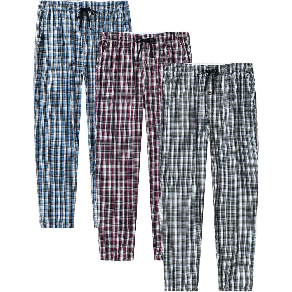 MoFiz Mens Pajama Bottoms Cotton 3 Pack Lounge Pants Set with Pockets Drawstring Plaid Pjs Bottoms Sleepwear with Button Fly(D-3pack Plaid)