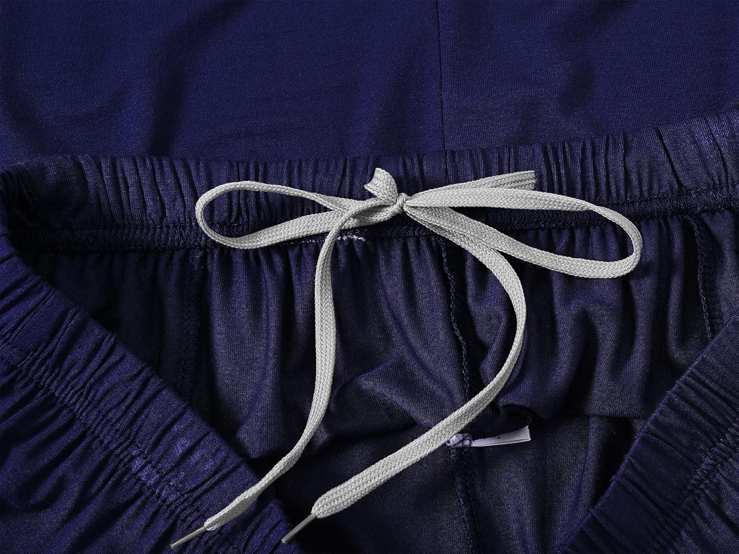 MoFiz Men's pajama set summer sleepwear short sleeve with v-neck t-shirt shorts, lightweight, quick dry, smooth. soft fabric wiith good elasticity and moisture wicking. Two side pockets with 5″ shorts. Tag-free at the back neck, elastic waistband and adjustable drawstring. Men's Pjs nightwear great for summer home wear, sleep wear, exercise, fitness, sports, running, yoga, walking, daily work.