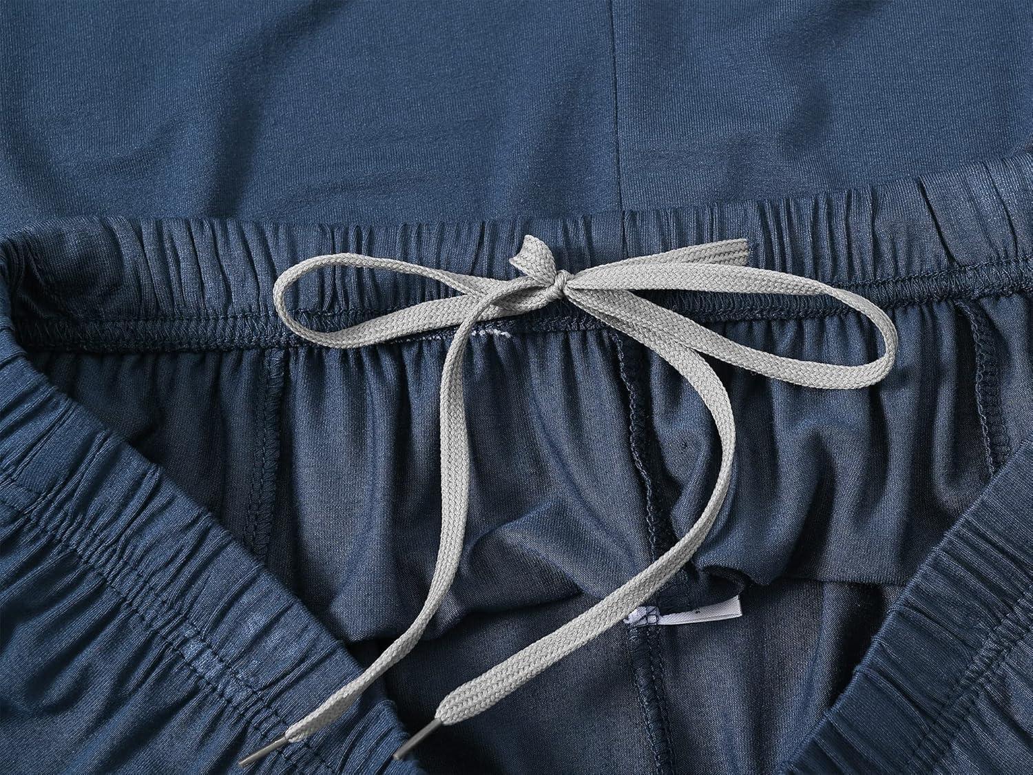 MoFiz Men's pajama set summer sleepwear short sleeve with v-neck t-shirt shorts, lightweight, quick dry, smooth. soft fabric wiith good elasticity and moisture wicking. Two side pockets with 5″ shorts. Tag-free at the back neck, elastic waistband and adjustable drawstring. Men's Pjs nightwear great for summer home wear, sleep wear, exercise, fitness, sports, running, yoga, walking, daily work.