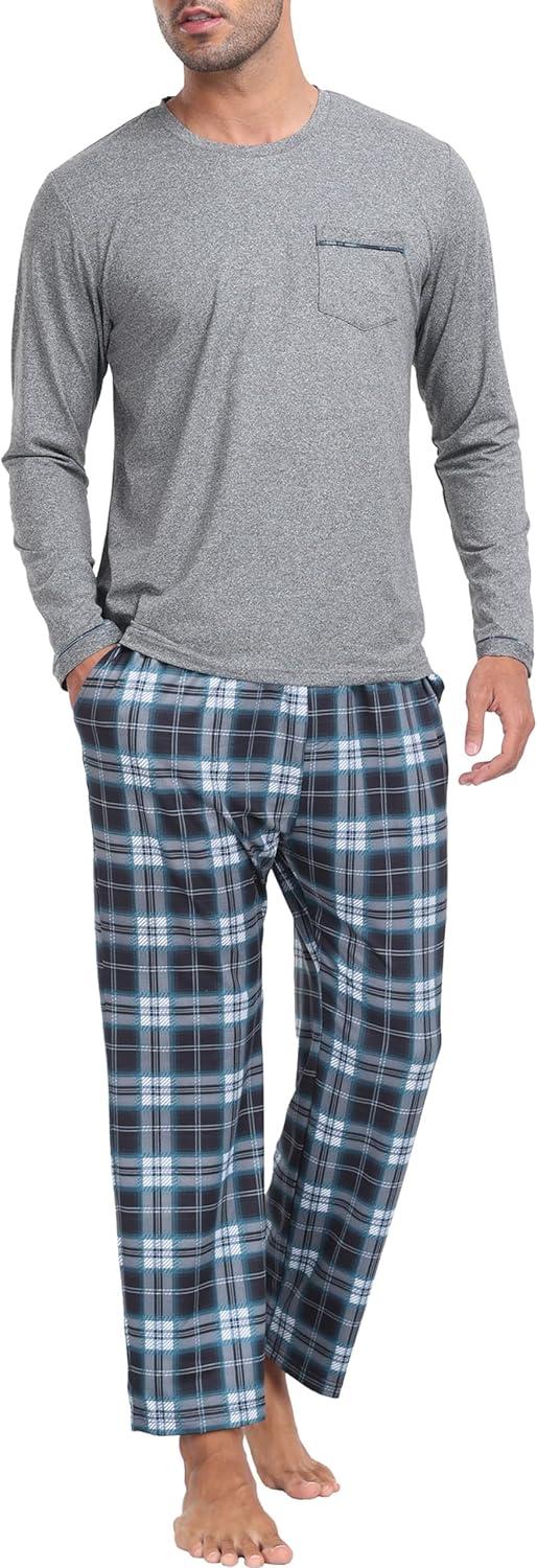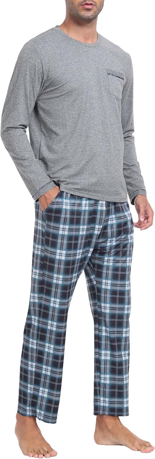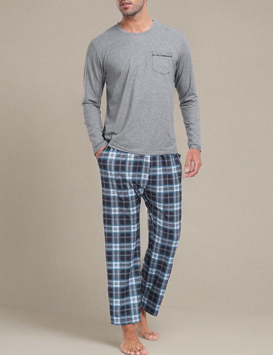 MoFiz Men’s Pajamas Plaid Sets Sleepwear Sleep Long Sleeve Shirts and Pants Pajama Set Soft Mens Pjs Lounge Set with Pockets(Style-e)